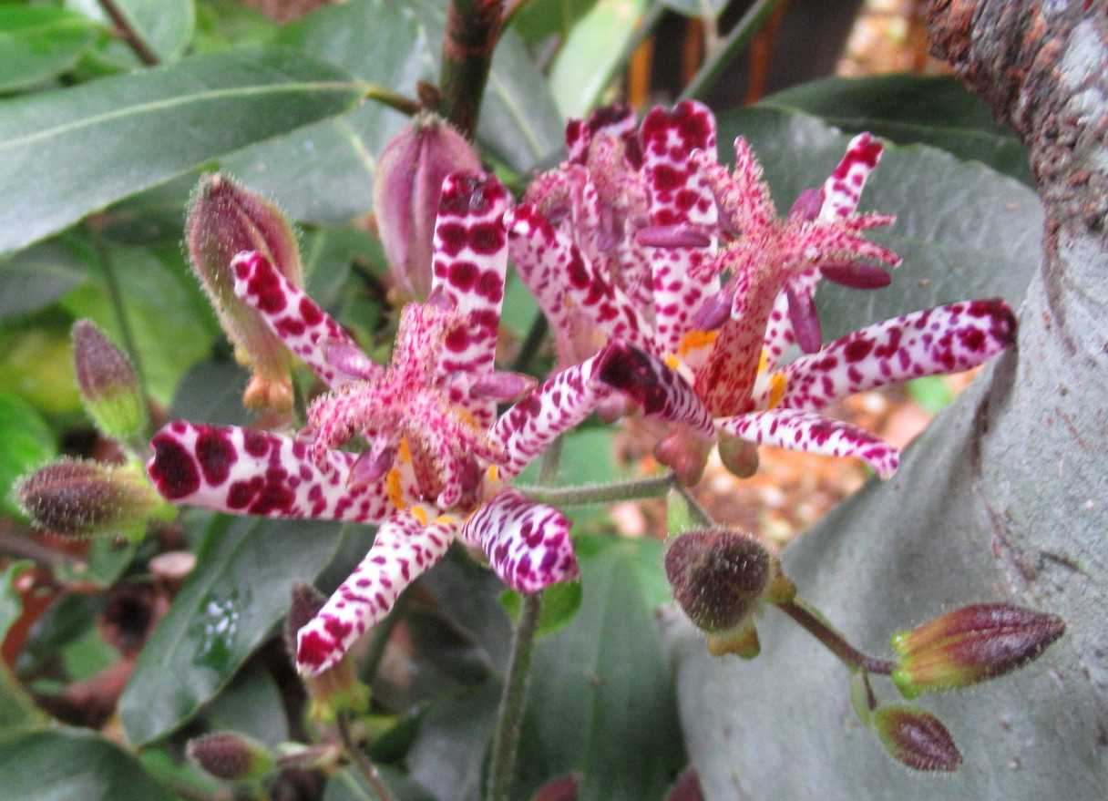 温暖化というのは天空のオゾンが減るのだろうか・・・日差しが強くなるということなのかな~雨が続くと途端に暦通りの気温になるわね~A^^;)秋雨前線がやってきて今日も雨で寒くなったかにゃかにゃガーデンです・・・n(..;)m?20日(月)の午前中にかにゃかにゃバーバはエントランスの模様替えをしました・・・n(..;)m?昨日の最高気温は17.7℃・・・今日はもっと下がってきて夜よりも昼間の方が寒くて15.6℃でしたよ~n(..;)m?倉庫の前のプランタースタンドには・・・n(..;)m?やはり夏の猛暑で根が煮えてしまったみたいでボロボロと枝か落ちるシャコバサボテンを折れたところから葉刺しした鉢が2つ置いてあります・・・今年の花は期待できそうにありません・・・COOPさんから届いていたオーニソガラム・バランサエ(リンクあり)も鉢に植え込んでここに置きました・・・n(..;)m?先週買ってきて残っていたガーデンシクラメンとディコンドラ・シルバーフォールズ(リンクあり)は玄関わきの寄せ植えにペンタスを切り戻して間に植え付けておきました・・・n(..;)m?花が咲き始めた八福神(リンクあり)はここに持ってきました・・・n(..;)m♪天使のスティックも入れて寄せ植えはこんな感じです・・・n(..;)m?ペンタスが終わったらまた考えましょう・・・n(..;)m?アプローチも夏冬混合ですね・・・n(..;)m?ガーデンベンチの周りは今こんな感じです~n(..;)m?ベンチの上の挿し芽で増やしたプレクトランサスも紫の花を咲かせ始めて秋らしくなってきましたよ~n(..;)m♪ヘリオトロープと間違えて挿し芽したプレクトランサスだけど・・・きれいに咲いてくれるのでまあいいかと思っています・・・n(..;)m?ハンギングボールに寄せ植えしているヒューケラが色づいてきてやはり秋が来ていたんだな~と納得しています・・・n(..;)m?アプローチ花壇から顔を覗かせているのはホトトギスです・・・庭のあちこちで咲いていますよ~n(..;)m♪この子が咲くと秋ですね・・・n(..;)m?秋の模様替えをしてスッキリしているエントランス花壇・・・n(..;)m♪それでもハイビスカスは次々と咲いていますよ~n(..;)m?ウォールガーデンはスーパートレニア・カタリーナブルーリバーが一気に伸びてしまったので小さいハンギングポットに植え付けたビオラと交替させました・・・アゲラタムはまだオレンジのビオラが安定していないので交替はもう少し先にします・・・n(..;)m?天使の前のプランタースタンドはダメになった株もあったので全部交替させました・・・n(..;)m?八福神の原種ハナキリンも花盛りです・・・n(..;)m?一番下のマイクロアスターが一株ずつちょっと様子がおかしいので薬剤散布をして様子を見ています・・・n(..;)m?マイクロアスターの花が咲き始めています・・・いっぱい咲くと可愛いんだけどね~n(..;)m?裏庭にリタイヤしたプランターはアーチ下で様子を見ています・・・n(..;)m?種から育てたペンタスは切り戻して肥料をあげてみました・・・もう一度咲いてくれるといいんだけど・・・n(..;)m?ニチニチソウはまた来年ということでプランターを回収して木酢を撒いておきました・・・10号ポットに植え付けたのは月曜日に届いたガザニア・カナリアスマイル(リンクあり)です~n(..;)m?スーパートレニア・カタリーナブルーリバーは1ポットだけ残しておいて冬にまた芽挿しをしようかと思っています・・・キャットテールとペンタスは切り戻して肥料をあげておきました・・・n(..;)m?裏庭ではサクランボの葉やスノーボールの葉っぱが枯れ始めましたよ~ここは日陰なので紅葉は期待できません・・・n(..;)m?裏庭から振り返るとこんな感じ・・・n(..;)m?東花壇の空いたところには・・・n(..;)m?かにゃかにゃガーデンの花とは色が違うほたるぶくろ駿河(リンクあり)を植え付けたポットを置いておきました・・・ちゃんと根が張ってから地植えしようと思っています・・・n(..;)m?天使の家の後ろではシュウメイギクがマックスです~n(..;)m?マックスを越えたかにゃ~n(..;)m?南花壇では~n(..;)m?クリスマスローズの新しい葉っぱが出始めました・・・何とか頑張って夏を乗り越えてくれたみたいですね~n(..;)m?フジの葉っぱ落ち始めて掃き掃除が忙しくなりました・・・n(..;)m?西側花壇でもあちこちでホトトギスが咲いていますよ~n(..;)m♪雑草にも負けず庭を席巻するホトトギスです~n(..;)m?エントランスで雨のせいか下を向いていたので花柄と思って摘んでしまったハイビスカスはワイングラスに生けました・・・n(..;)m♪19日(日)の晩御飯は残り物を整理・・・n(..;)m?20日(月)の晩御飯はイカとマッシュルームのペペロンチーノにしました~n(..;)m?21日(火)の晩御飯はベランダ菜園のニラが柔らかく生えそろっていたので刈ってきて半分をお隣にあげて半分をニラ玉にしました~柔らかくて美味しかったですよ~n(..;)m?そして今日の晩御飯は味噌豚定食にしました~n(..;)m♪先週まで庭仕事すると汗をかいていたのに今日は寒かったですね~風邪ひきさんが出てきそうで心配だわ・・・このまま寒くなるのかと思った