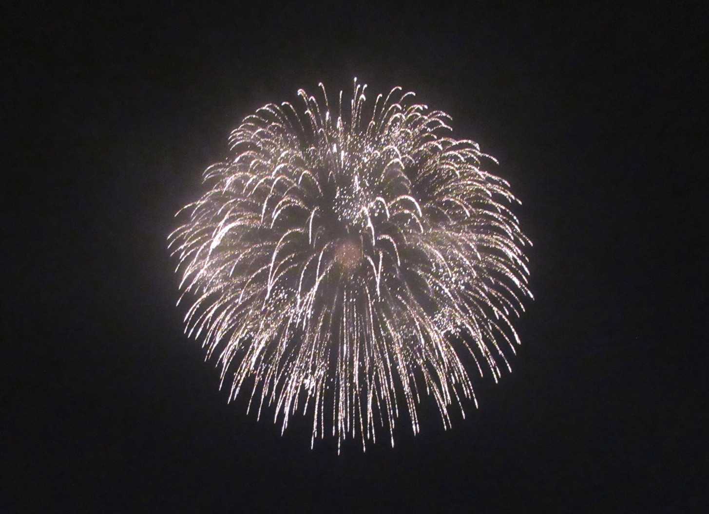 22日(金)の夜にやってきた娘家族・・・23日(土)はららぽーと磐田へお買い物に行って~夕方5時にはおじいちゃんの運転する車でいわた夏祭り花火大会(リンクあり)へ・・・花火大会まで時間があるので5000円で予約購入していた渚の交流館のテラス席で待っていたら、スタッフさんが「暑いから中で待ってくださっていいですよ~」と言ってくださったので涼しい交流館の中で待ちました・・・バタバタしていたのでマメちゃん②の靴を忘れてきてしまっていたのが判明・・・仕方ないのでハンカチを履かせました・・・n(..;)m?マメちゃん①は浴衣を着せてもらってご機嫌・・・n(..;)m♪花火の火事に備えて消防艇が運ばれてきましたよ~n(..;)m?福田のタイヨーで買ってきたお惣菜を食べてからマメちゃん①とパパはかき氷とトウモロコシを求めて出店に・・・帰ってきたら交替でかにゃかにゃ夫婦も会場の様子を見に行きました・・・例年72000人くらいの人出だと聞いたけれど今年はもっと居るわね・・・暑いのにみんな元気だね~n(..;)m?市長さんの祝辞等があって始まりは7時半・・・スターマインで始まりました~n(..;)m?しだれ柳~n(..;)m?ハートもあったわよ~n(..;)m?惑星みたい・・・n(..;)m?多色も綺麗ね~n(..;)m?小さい柳がいっぱい・・・これ撮ってみたかったのよね~n(..;)m♪スターマインもいろいろ進化していて・・・n(..;)m?真っ赤なものや~n(..;)m?青いものもあり・・・n(..;)m?あらら風が南西だったのね・・・煙が・・・n(..;)m?煙がこちらに靡いてきて見えなくなってきたわ・・・n(..;)m?それでもマメちゃん①は嬉しそうに見ていましたよ~n(..;)m♪生まれて初めての花火大会・・・1時間の夢の饗宴が終わりました・・・n(..;)m?花火は8時半に終わったんだけど・・・指定駐車場は9時半までは出られないのでしばらく待ってから駐車場まで歩き・・・9時半に駐車場を車で出ても渋滞でお家に帰ってきたのは10時半でした~A^^;)翌日の24日(日)は娘の幼馴染が子連れでやってきてマメちゃんと家の中で大騒ぎで遊んでました・・・予定の帝王かいざいくのハートメダルも作ったんだけど写真を撮るのを忘れたわ・・・A^^;)25日(月)はおばあちゃんはお家で掃除洗濯と晩御飯つくり・・・他は森町のアクティ森(リンクあり)へ紙漉き体験に出かけました・・・これが持って帰ってきた紙漉き作品です~マメちゃん①が作ったうちわはあとで鉛筆描きの線でハサミで切り揃えるのだそうですよ・・・下のはママが作ったそうです・・・n(..;)m♪楽しい時間はあっという間に過ぎて26日(火)午後には掛川駅まで送って行って東京へ帰ります・・・荷造りをしてお昼はかにゃかにゃバーバが作ったランチを食べてもらいました・・・n(..;)m♪なにせ凄いマメちゃん台風だからごちそうの写真も撮る暇もなく思い出したのは最後の日・・・n(..;)m♪やっと落ち着いて食べているマメちゃん①とパパでした~n(..;)m♪孫と一緒の写真を撮りたかったので娘たちが荷物を詰めている間に自動シャッターで撮ったんだけど・・・12枚撮ってまともに撮れたのはこれだけでした~n(..;)m?1週間ぶりのかにゃかにゃガーデンは相変わらずの夏です~n(..;)m?エントランスの~n(..;)m?これは昨日の最高気温で33.3℃・・・今見てきたら今日の最高気温は32.4℃でしたよ~n(..;)m?2週間前に切り戻したウォールガーデンも花盛りになってきました・・・n(..;)m?マメちゃんたちが喜ぶかにゃ~と思っていたけれど・・・お外は暑いから花を愛でている余裕がありませんでしたね~n(..;)m?プルメリアがどんどん咲いてアピールしていたんだけどね~子供でも暑くて外に出たくない気候になってしまったのね・・・n(..;)m?裏庭に続くアーチではルリマツリが花盛りになってきました・・この子も熱帯植物だから30℃くらいがいいんでしょうね~n(..;)m?見た目は秋って感じね・・・n(..;)m?猛暑を過ぎてほっとしている感じ・・・n(..;)m?おやおや・・・エアコン室外機の上に置いている春に挿し芽をしたプルメリアの赤ちゃんに花茎が立ち上がってきていて蕾がついていますよ~ちなみに鉢は4号です・・・n(..;)m?クレマチス・プリンセスダイアナは夏中咲いてましたね~n(..;)m?ロウグチも・・・クレマチスは暑さに強いみたいね・・・n(..;)m?夏剪定したバラに秋バラが咲き始めました・・・n(..;)m? これはクロードモネちゃんね・・・n(..;)m? 1週間の間にギボウシ・ファイヤーアイランドの花は咲き終わったみたいです~n(..;)m? リビングの出窓に居るパフィオペディルムちゃんがマメちゃんたちが居る間に咲いてくれるかにゃ~と思ったんだけど・・・帰ってしまってから咲き出しました・・・n(..;)m?静かになるのを待ったみたいです・・・n(..;)m?静かになった我が家で今日の晩御飯はナスの味噌煮と焼き鮭・・・カニやかにゃバーバのグラスにはマメちゃんがアクティ森で買ってきたいちごサイダーの残りです~ジジババはマメちゃんたちが来ていた間ジージが撮っていたビデオを観て思い出し笑いをしながら晩御飯を食べました・・・n(..;)m♪いつも仕事がない
