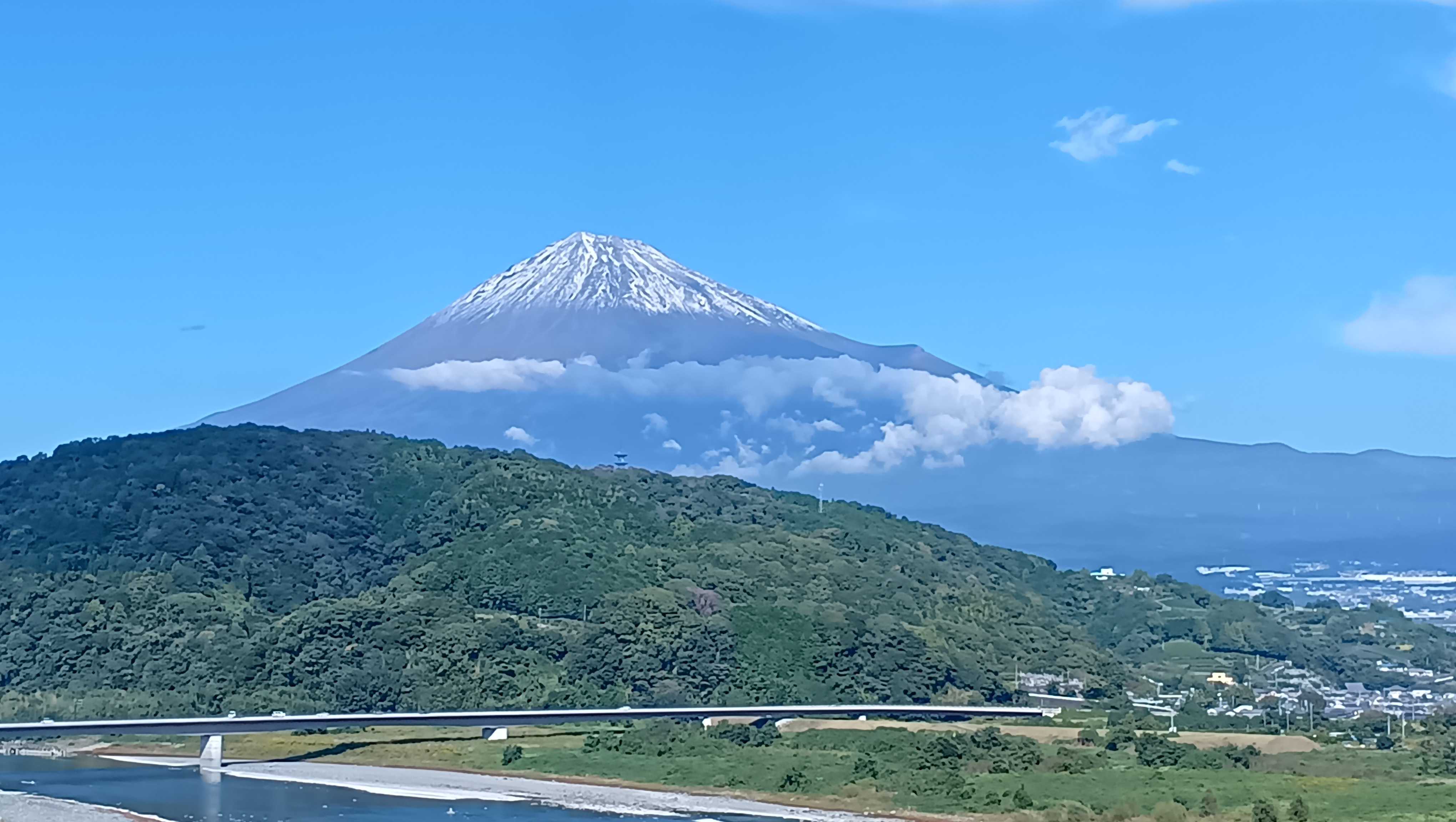 今週は孫の子守りをするために東京に来てました。金曜日に来て日曜日の今日じぃじの運転で戻ってます。帰りは雨なので富士山は雲の中…行きはいいお天気だったので初冠雪の富士山がみられました。良いことがあるように皆さんにもお福分けしますので楽しんで下さい😊