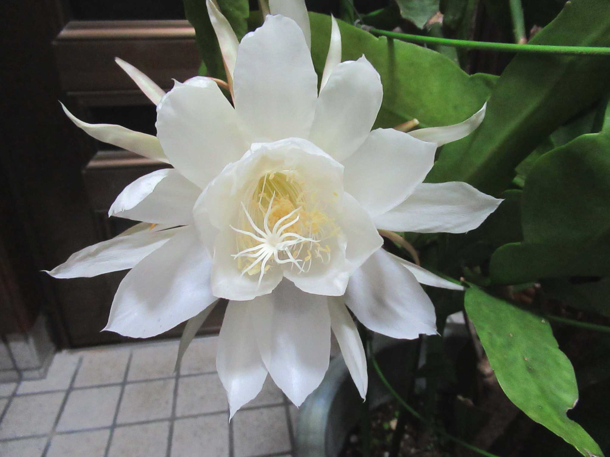 昨夜だるまサボテンに花が咲いたのよ~綺麗でしょ~(^m^)))♪ベランダの苗床に置いているだるまサボテンに花芽がついていたのでリビング出窓に移動しておいたのよね・・・n(..;)m?夜8時ころ見てみたら蕾が綻んでいたの・・・n(..;)m?ちょっと月下美人に似ているな~どれくらい開くのかにゃ~n(..;)m?9時ころ・・・だいぶ開いてきました・・・n(..;)m?横から見るとこんな感じ・・・n(..;)m?それからどんどん開いてきて・・・真夜中にはこんなに大きく開いていました~n(..;)m?綺麗だから一眼レフを出してきて撮影・・・n(..;)m♪月下美人に負けないくらい綺麗・・・n(..;)m?花びらの数も凄い・・・n(..;)m♪残念ながら香りはわずか・・・青臭さの中にちょっと甘い香り・・・でも綺麗よね~n(..;)m♪翌日のお昼になっても月下美人のようにくたっと萎れていませんでした・・・今午後3時くらいなんだけど少し花が閉じてきています・・・夜にはすっかり花が閉じていました・・・n(..;)m?10月6日(月)はCOOPさんに注文しておいた苗がたくさん届きました・・・これがパンジー(さくらこ・ももこ)(リンクあり)とプリムラ・マラコイデス(うぐいす)(リンクあり)で・・・n(..;)m?これがビオラ(ビエナ)(リンクあり)・・・n(..;)m?フリル咲パンジー3色セットを2つとゼラニューム3色セットも買っておきました~n(..;)m?今日は南に台風22号が居るせいか蒸し暑いかにゃかにゃガーデンです~n(..;)m?月曜日にさっそく届いた苗を植え付けたので先週植え付けたプランターをエントランスに出してきました・・・n(..;)m?これは今日のお昼頃の気温で28.7℃・・・今見てきたら今日の最高気温は28.9℃でしたよ~蒸し暑いわけだわ~n(..;)m?台風22号がやってきているようなので風が強いといけないから門扉を閉めてます・・・n(..;)m?鉢は門扉の中に入れて・・・n(..;)m?風が避けられる倉庫の前には・・・n(..;)m?八福神(リンクあり)やユーフォリビア・ブラックバード(リンクあり)なんかを置いています・・・n(..;)m?ここにきてキンポウジュ(リンクあり)に花が咲きました~n(..;)m?夏にあちこちの庭で見られるブラシの木ですよ~n(..;)m?今年のハロウィンリースができたので玄関ドアに掛けておきました~n(..;)m?セリアに行ったら造花とカボチャのミニぐるみを見つけたので買ってきて括り付け、上の方は去年拾ってきて残っていた松ぼっくりとドングリを張り付けておきました~どうかしら・・・n(..;)m?ガーデンベンチの上に置いていたトレニアの花が終わってきたので引退させてやっと蕾がつき始めた挿し芽で増やしたヘリオトロープ・ブライトブルーを出してきました~n(..;)m?先週植え付けたマイクロアスターと・・・n(..;)m?マラコイデスは台風が通過したら虫にやられたペンタスと交替させようと思っています・・・n(..;)m?エントランス花壇では~n(..;)m?まだプルメリアが細々と咲いていますよ・・・n(..;)m?裏庭に続くアーチ下では~n(..;)m?6日の月曜日に植え付けたプランターが並んでいます・・・n(..;)m?右がマラコイデス3色で・・・左がゼラニューム3色・・・n(..;)m?こちらの2プランターはパンジー(さくらこ・ももこ)です~n(..;)m?ビオラ(ピエナ)は小さいハンギングポットにひと株ずつ・・・大きめのハンギングポットにはフリル咲パンジーを3色ずつ植え付けておきました~n(..;)m?裏庭では~天使の家の後ろで・・・n(..;)m?シュウメイギクが花盛りです~n(..;)m?西風でちょっと倒れ気味なのでこのあとジージが紐でサクランボの木に引っ張ってくれました・・・n(..;)m?フジの葉っぱは少しずつ黄葉してきましたよ・・・n(..;)m?藤棚ポーチから振り返るとこんな感じ・・・n(..;)m?西側花壇では雨がやってきそうなのでゼフィランサスが咲いていました・・・n(..;)m?10月6日(月)は十五夜だったんだけど・・・西側の夕焼けの空は雲に覆われていました・・・東側はどうかにゃ~と振り返ってみたら・・・n(..;)m?こちらはまだ雲が薄くてうっすらと十五夜の月が見えてます~n(..;)m?夜は全く月が見えなかったので十五夜の月はこれだけでした~n(..;)m?10月5日(日)はベランダ菜園でまだバジルが葉っぱを茂らせていたので収穫してバジルペーストを作って~n(..;)m?バジルスパゲッティーにしました~n(..;)m♪バジルペーストの残りをドレッシングにしようと思ってガラス瓶にとっておいたんだけど・・・今日、ふと思い立ってバターを20g減らしたかわりにバジルペーストを20gいれて・・・カシューナッツも入れたバジルクッキーにしてみたらジージに評判が良かったわ~バニラエッセンスを入れないのでバジルの香りがして美味しい・・・レパートリーが増えました~n(..;)m♪10月6日(月)は厚切り鮭を焼いて鮭定食にして~n(..;)m?夕食後はお月見団子を頂きました~n(..;)m♪7日(火)の晩御飯は卵が結構残っていたのでジージの好きなオムレツにしてあげました~n(..;)m♪夕方4時半すぎて涼しくなったのでちょっとウォーキング・・・堤防に上がって戻ってこようと思ったら手前でヒガンバナ発見・・・今年はヒガンバナが遅めね・・・n(..;)m?太田川堤防から見たサ