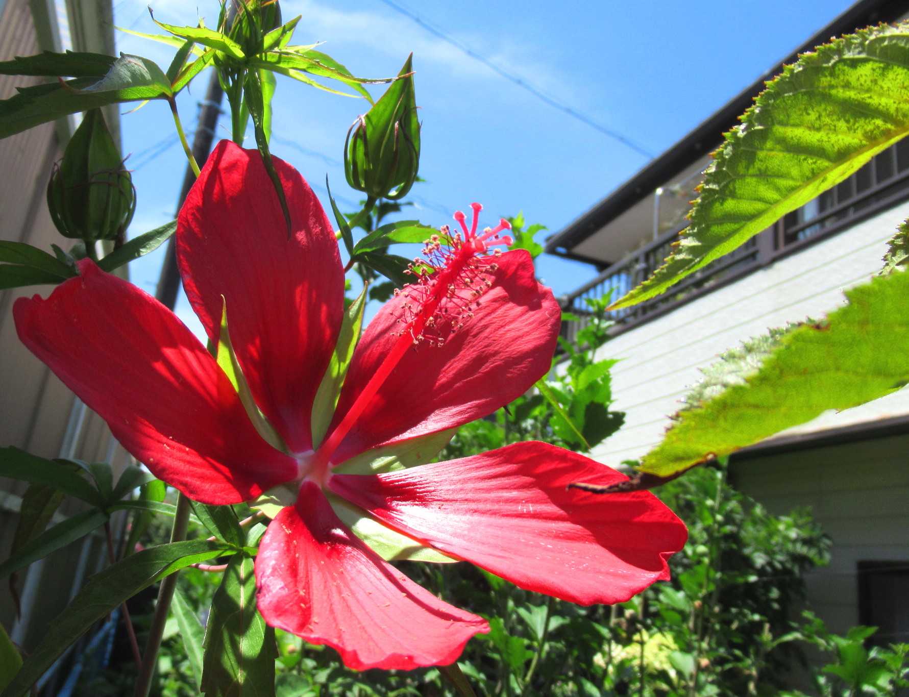 裏庭でモミジアオイ(リンクあり)が咲き始めましたよ~(^o^)bベランダ菜園では~n(..;)m?種から育てた白丸ナスに~n(..;)m?花が咲きました~老眼のかにゃかにゃバーバにはよく見えなかったんだけど写真を撮ってみて気づいたわ・・・アブラムシが凄い・・・慌ててオルトランを撒いたら今日はもう居なくなっていましたよ~花は白丸ナスだから淡いピンクです~n(..;)m?ミニトマト・チョコアイコ(リンクあり)は毎日どんどん収穫出来ていますよ~ちょっと他のミニトマトより茶色っぽいチョコアイコです~おやつ代わりに食べても結構甘くて美味しいわよ~n(..;)m♪ベランダからアーチ下花壇を見下ろすとこんな感じ・・・n(..;)m?間にブルーベリーの酸性土壌花壇を挟んで右が夏花の東花壇です~n(..;)m?関東も梅雨が明けたそうでかにゃかにゃガーデンもすっかり夏の空です~n(..;)m?エントランスの~n(..;)m?これは昨日の最高気温で32.3℃・・・昨日はまだ蒸し暑かったわよね~今日の最高気温も32.4℃だったけれどカラっとしていたのでそう暑く感じませんでした・・・n(..;)m♪夏の日差しを感じてか・・・久しぶりにハイビスカスが咲き出していました・・・n(..;)m?ヘリオトロープの挿し芽は根付いたみたいよ~n(..;)m♪今週仕立て直した多肉ちゃん寄せ植えはちゃんと馴染んでますよ~n(..;)m?まあ、夏の間はまた元気に育つだろうから冬前にはもう一度仕立て直すようになると思うんだけどね~n(..;)m?水で固まるネルソン入りの花ごころ多肉直物寄せ植えの土(リンクあり)があれば簡単よね~n(..;)m?セメントベイスからはウサギの兄弟が覗いています・・・n(..;)m?エントランス花壇に置いていたトルコキキョウが花びらがチリチリしていたので倉庫の前の日陰に移動させました・・・n(..;)m?ちょっと日差しが強すぎるのよね~n(..;)m?アプローチには~玄関ポーチの上に吊るしていたアゲラタムと葉っぱが増えてきたポトスライムを交替させました~n(..;)m?ウォールガーデンはすっかりブルーガーデンになってます~n(..;)m♪エアコン室外機の前はグロリオサが花盛り~n(..;)m♪エアコン室外機の上ではハナキリンが花盛りになりました~n(..;)m♪夏は赤が元気だね~n(..;)m?おやおや・・・昨日からかにゃかにゃガーデンをうろうろしているのは何トンボかにゃ~と思って調べてみたら、シオカラトンボのメスでムギワラトンボ(リンクあり)みたいよ…シオカラトンボって雌雄で呼び名が違うのね~n(..;)m?天使の前ではガザニアが夏バテしたみたいなのでリタイヤさせて・・・種から育てたペンタスを出してきました~n(..;)m?プランターのペンタスが咲きましたよ~n(..;)m?ペンタスF-1ギャラクシーパープルスター(リンクあり)がきれいに咲いてくれました・・・ピンクの縁取りの花が可愛いでしょ~苦労した甲斐がありました~n(..;)m♪キャッツテールも花盛りになって・・・株分けしてあげるといいのだけど水やりがやっとのかにゃかにゃバーバです~n(..;)m?天使のスタンドに這わせている大輪ジャスミンが次々と咲き出していい香りを振りまいています・・・n(..;)m?一輪だけでも花壇がいい香り・・・夜になるともっと香るわよ~n(..;)m♪裏庭に続くアーチのルリマツリもお天気になって元気に咲き出しました・・・n(..;)m?雨には弱くて流れてしまうんだけどお天気の日はよく咲いてくれます・・・n(..;)m?暑さに強い熱帯植物ですよ~n(..;)m?ちょっと花柄がべたつくので箒にくっついて掃除しにくいけどね・・・n(..;)m?エアコン室外機の上では冬に株分けしたアンスリュームが元気に育っています・・・n(..;)m?アーチ下花壇では今年2度目のクレマチス・ロウグチが咲き出しました・・・n(..;)m?クレマチスも蒸し暑いのは嫌みたいね・・・n(..;)m?アーチ下のデビュー待ちポットの中では~n(..;)m?コレオプシス・グレースフルドリーム(リンクあり)が元気いっぱい・・・地植えしてくれと言ってます・・・n(..;)m?先週買ってきたサルスベリ・ペチートサンシャイン(リンクあり)がピンクに光り輝いています・・・n(..;)m♪サルスベリってどれが花びらでどこまではひとつの花なのか分かりづらいよね~n(..;)m?フリフリの花びらが6枚集まって中心に黄色いシベがあります・・・n(..;)m?ここまで大きくするとわかりやすいかにゃ~ちゃんと雌しべも見えますよ~フリフリの花びらが乱反射してキラキラしてますね~n(..;)m?裏庭を見ると何やら赤い花が見えてます・・・n(..;)m?向いの東花壇ではランタナが花盛り~n(..;)m?エキナセア・プルプレアがロケットになって飛んでいきそう~n(..;)m?ヘリオプシス・ブリーディングハーツ(リンクあり)も結構賑やかになってきました・・・n(..;)m?サクランボの木の右端に~セミの抜け殻が・・・n(..;)m?居ましたね~クマゼミ・・・n(..;)m?朝からワシワシ聴こえていたのよ~セミの鳴き声が梅雨明けと言うから本格的な梅雨明けなのかもね~n(..;)m?南花壇ではかにゃかにゃガーデンのプレートの前でモミジアオイ(リンクあり)が咲いていました~n(..;)m?やっぱりモミジアオイが咲くと夏が来た~って感じね・・・n(..;)m?朝に咲いて
