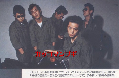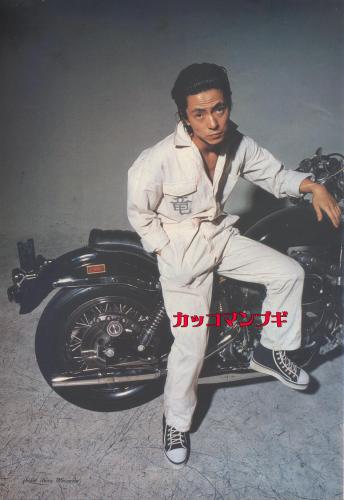 インタビューによると、岩城氏はハタチの頃「摩可男」というバイクチームを結成したが「ポリ公がしつこくて」解散したらしい。そして23歳の12月に「クールズ」を作りなおしたそうだ。また、芸能界にスカウトされる前には様々な職を経験したらしいが、定職を持たずとハーレーを乗り回したり高級宝飾品をさりげなく身につけてたりしている。その部分は想像におまかせしよう。むかし「旅人の唄」で読んだのかどうかどうも記憶が定かで無いがバイクに乗る時に革手袋の上に指輪をする(!)というセンスに、岩城氏を慕う安岡力也氏がぞっこんだったという。真偽のほどは確かでは無いため、どなたかご存知ならお教え願いたい。入手困難「旅人の唄」岩城滉一著この写真は肖像権等で削除要請があれば直ちに消します。 また、最近当ブログより無断で転用される方がいますが お止め願います。 楽しめた方はクリック!にほんブログ村