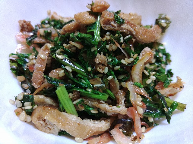 大根葉の活きのいいうちに、早速大根葉ふりかけを作った。