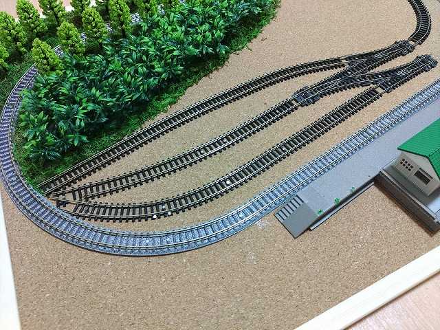 米内沢駅レイアウト作り、下ごしらえが進んできたところで、いよいよ一番楽しい駅構内の配線に着手。今は草やバラストに埋もれているが、国鉄時代は広く立派だった構内を、この狭いパネルに表現するか。前後のポイントは物理的に配置できないので、そこは省略し、構内もフレシキブルレールを多用しイイ感じに表現した。 構内用のポイントはヤフオクで落札したピコ社製品を使った。全体図は以下の通り、イイ感じにデフォルメできたと一人ご満悦。 仮置きした線路を釘とボンドで固定した。前後のポイント部分はバラストで埋めて誤魔化す。バラスト ナノ ダークブラウン【KATO・24-327K】「鉄道模型 Nゲージ カトー」