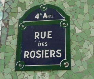 次の通りは Rue des Rosiers (ロジエ通り)ちょうど開店しようとしていたのが、ガイドブックにも載っている有名店、ファラフェルのお店。このマレは19世紀以降ユダヤ人が多く住んだ地区で、ファラフェルはヒヨコ豆をベースにしたコロッケで中東の食べ物。コロッケと野菜をピタパンに挟んだのがよくガイドブックに載っていて、食べたいね~と言っていたのにお腹がいっぱい・・・朝ごはんにラデュレのパンを食べたことをモーレツに後悔した。 (パンはおいしかったけど)こちらのお店もユダヤ系、看板にダビデの星が描かれている。中を覗いてみると、ショーケースにはソーセージやお肉類敬虔なユダヤ教徒は食べものの制約が多いらしく、他国に旅行に行くと困るということを聞いた。肉製品と乳製品を同じ調理場で料理してはいけないし一緒に食してもいけない豚肉、エビ、カニ、貝類は食べない血を食べること禁じているので、食べてよい肉も血抜きは完璧でなければいけないなど、他にもいろいろ規定があるようだ。神仏両方に手をあわせてしまうような日本人には到底理解できないが、これを守れるのはよほど深い信仰心がなければならないだろう。話はがらっと変わるが、このあたりを歩いていると、ラブラブに腕をがっしり組んだ男性同士のカップルをちらちら見かける。朝っぱらから・・・いや朝だからか マレはゲイの方々が多うございます。(ゲイだけではないそうですが)芸術家が多く住む地域だから何となく納得できるが、そちら方面のショップも多いらしい。店頭に果物が並べられたお店。生活感あふれる“何でも屋さん”チックなこの店の角を北側に曲がった。