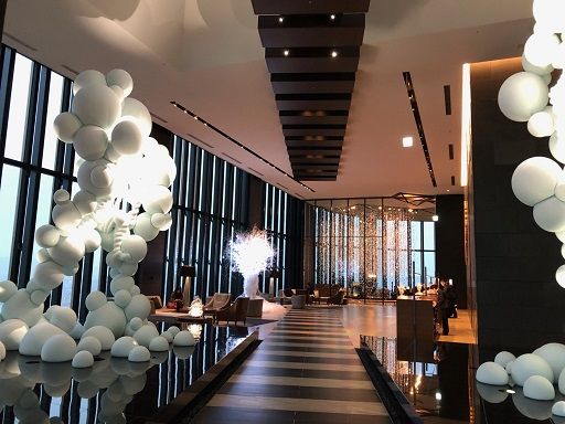フェスティバルホールの真ん前、大阪メトロ四つ橋線「肥後橋駅」直結の中之島フェスティバルタワー・ウエストにあるコンラッド大阪。コンラッドはフェスティバルタワー・ウエストの33階から40階に入っている。レセプションは40階で、エレベーターから出ると素晴らしい眺めが眼前にひろがる。ポケモンGO!のトレーナーさんなら、こんな遊びもできるよ。「ひこうタイプ」が出ると完璧だね。風神雷神をテーマにしたアートの間を通りぬけるとロビーエリア。風神雷神には、いつも心の中で「ビバンダムくん」とつぶやいてしまふ、、ミシュランのトレードマークのムッシュ・ビバンダムね。このロビーは、いつ来ても開放感があってお洒落で素敵な空間。ただ、「外資だから大きなクリスマスツリーがあるはず!」と超楽しみにしていた母にとっては、ここのツリーはオシャレすぎたようだ。予約していたのはツインデラックスルームだったが、ヒルトンオナーズG特典でワンランクアップし、ツインプレミアムビュールーム(南側)がアサインされた。エキストラベッドはターンダウン時に搬入されたので、チェックイン時は広く感じた。広さは50平米。135㎝幅のベッドが2台。ベッドの上では、コンラッドベアちゃんがくつろいでいた。窓際にはソファ、母のくつろぎ場所になる。母はクッションにタオルを敷いてゴロンとしてた。お仕事エリアヒルトンオナーズ特典でWi-Fi接続無料だが、今や日本のビジホはほとんど接続無料だから、「有料」というほうに驚くけどね。ここらへんは“和テイスト”やね。鉄瓶とエスプレッソがありまっせ。差し色の「赤」が効いている。バスルーム洗面台はダブルボウル。洗い場付きバスで、浴槽は円型。丸いのはおもしろいけど、内容積がかなり大きいらしく、お湯がたまるのに時間がかかった。バスアメニティは「シャンハイ・タン」のものターンダウン時には来るかと期待していた『コンラッドダックちゃん』がお目見えしない。(コンラッドダック=お風呂に浮かべるアヒルちゃん)娘が電話して聞くと、台風の影響でダックちゃんは不在とのこと。えェ~ まだいらっしゃらないの噂(口コミ)で、いないらしい、、ということは知っていたが、もういるんじゃないかと思っていた。台風って、あの21号? それとも別のやつ?? 中国のかな??台風の大波でダックちゃんたちは大海に旅立ってしまったのか、、近大マグロのように、波にもまれて傷つき力尽きたのか、、そんなわけないけど、とにかくご不在。ダックちゃんに無関心の母は、「子供じゃあるまいし、お風呂アヒルがいなくたって」と言うけど、コレクター魂がある娘と私はかなり意気消沈した。透明ダックちゃんに会いたかったよーー(涙)37階からの眺めは南側。土佐堀川と、遠くに京セラドームが見える。真下は肥後橋交差点。梅田界隈に来るときによく走る四つ橋筋。阪神高速の土佐堀から出入橋にかけてのカーブ。下がすぼんでいて見ると不安になる大同生命大阪本社ビルがある。夜景は梅田のある北側のほうがより素晴らしいそうだが、南側もよろしいで。何たってハルカスと通天閣がありますもん。といっても、通天閣はちっちゃくてわかりにくいけどね。クリスマス直近の日、近くのビルで、遊び心のあるイルミがあった。こういうの楽しいねコンラッド大阪 大阪府大阪市北区中之島3丁目2−4