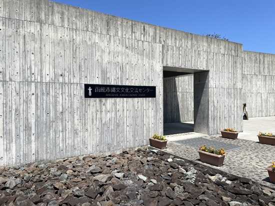 五稜郭タワーから電車通りを湯の川温泉まで走り、道道83号線を南茅部まで。国道278号線に入って、五稜郭から約30㎞で函館市縄文文化交流センターに着いた。入場料は大人300円。カックウちゃんお久しぶり。9年ぶりね。疲れないくらいのいいボリュームで、展示の説明がわかりやすく、縄文の時にいざなってくれる。冬どうしてたん? と思ってしまうけど、寒さに強いDNAを持った人々が暮らし、色々と工夫もしていたのだろう。国宝 土偶(北海道函館市著保内野遺跡出土)カックウちゃんだ。約3500年前、縄文時代後期の土偶。高さは41.5cmだ。地元の奥様がジャガイモを掘ろうとした時に見つけたのが今からちょうど50年前。2007年に国宝指定を受け、2023年に「北海道白滝遺跡群出土品」が国宝指定を受けるまでは、北海道唯一の国宝だった。ここでは国の宝のカックウちゃんを飽きるまで見つめることができる。カックウちゃんは今秋から長期出張に出るので、今年10月28日から来年2026年2月18日まではレプリカ展示になるとHPにあった。建物内から東の海を眺める。真ん中にある芝生の辺りは垣ノ島遺跡。縄文時代の遺跡だ。隣接する道の駅でお土産を買った。カックウちゃん顔型最中。バラで買ったので、お顔を崩さないように持ちかえるのに気を遣った。函館市縄文文化交流センター北海道函館市臼尻町551−1
