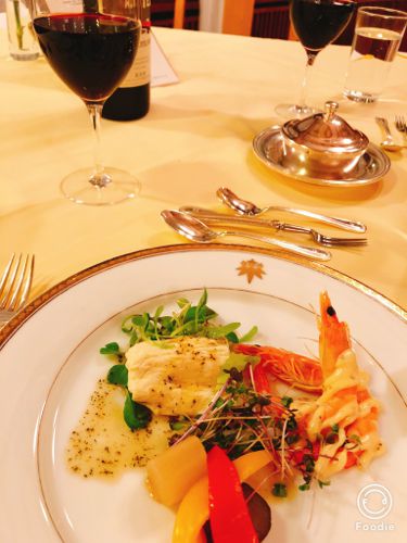 クラシックホテル独特の雰囲気があるダイニングルームでコース料理を楽しむ。