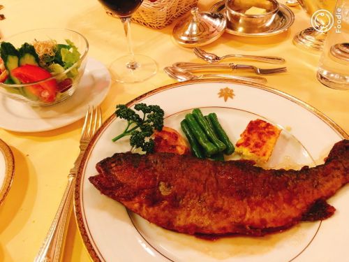赤飲むし、お肉好きだし、、とかなり悩んだが、名物料理の虹鱒のソテー金谷風をチョイス。