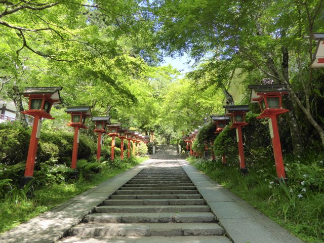 本殿金堂への上りはここからが本番で、清少納言が「近くて遠きもの」と記した “鞍馬の九十九折りの道” の坂道を30分かけて上ることになるが、
