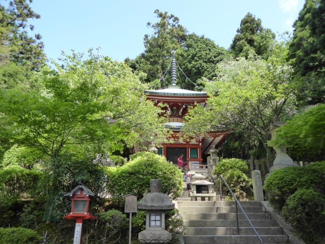 多宝塔の左側にある新参道のなだらかな道を歩き、最後に石段を上ると本殿金堂がある。