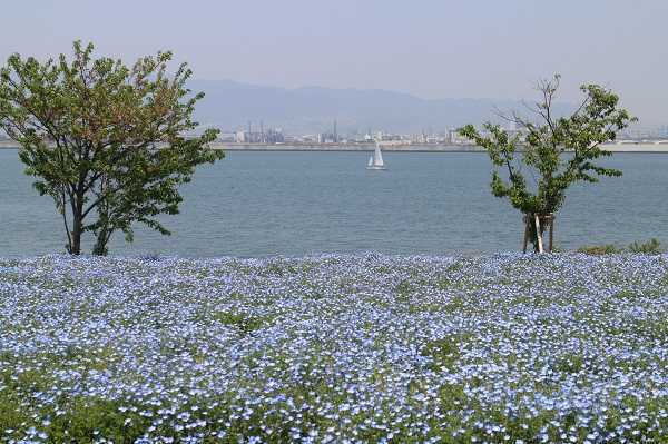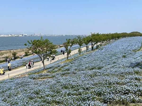 此花区にある人工島の舞洲の西の端にある 「大阪まいしまシーサイドパーク」 で開催されている 「ネモフィラ祭り2022」