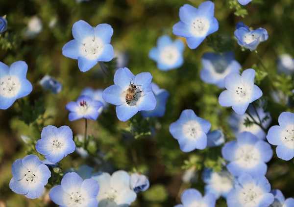 ユリ園の時は開花時期が梅雨時だったので、もっと暑くて日陰のない園内を歩くのは大変だったが、 ネモフィラ はちょうど過ごしやすい時期に咲くので鑑賞に体力いらないのがいい。