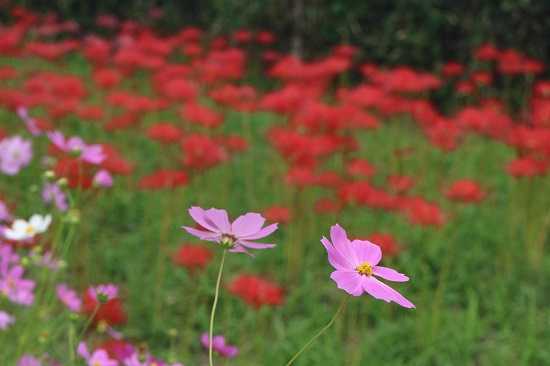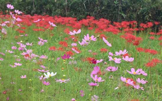 彼岸花とコスモスの競演。