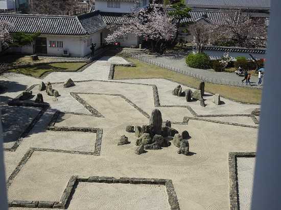 天守閣前にある枯山水庭園が 「八陣の庭」