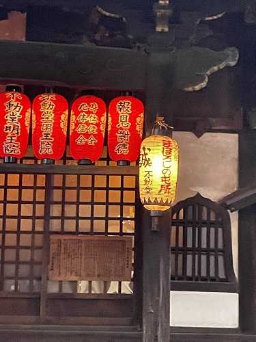 不動堂明王院の提灯に 「まぼろしの屯所」 とある。