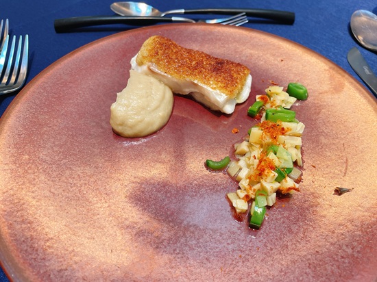 地元酒蔵が味醂蔵として使っていた建物がレストランになっていて、味噌・醬油・麹などの発酵食品を使ったフレンチのコースをいただいた。