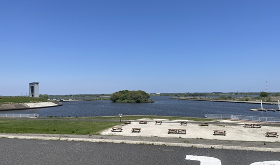 たぬき島 のすぐ後ろには利根川の流れがある。