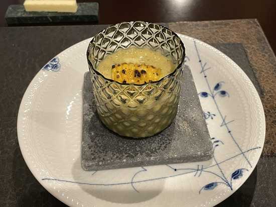 中にとうもろこしのアイスクリームが入っていて、香ばしく焼かれたとうもろこしと合わせて食べると、京の夏の熱気が少し冷まされて涼やかな気分になった。