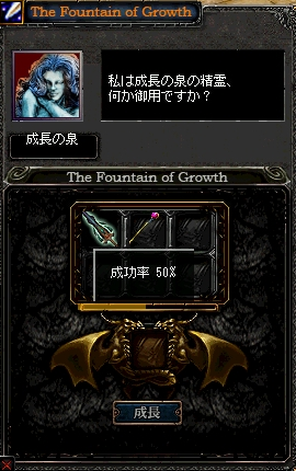 海底で2つの「おそまつ」が無事に50になった。キャラ自体も115に何とかなった。バロン(あいなさんがいうところの「するめ」)合成に成功したら転生すっかな。。。と思い、面倒くさかったのもあって、自分の中では相性の良くないウーノスの泉に。さてさて、表示上五分と五分。どうなることやら・・・・あれ、できちゃってるやんwデキちゃった結婚という言葉は耳にしたことはあるが、この場合「デキちゃった転生」とでも称するのだろうか・・・。で、先週の木曜日、都合6回のアップデートを経た後から、キャラに妙なエフェクトが。何ですかこの安っぽい、チャチなキラキラは?ギルドの祝福(経験値20%アップ18000秒)、だそうだが・・・スキルアイコン(支援とかが表示されるとこ、左上の顔のやや右下)は透明画像だし、この運営のことだ、本当のところは、予期しない現象だが修正しきれなかっただけなんじゃなかろうか・・・と勘ぐってみたり・・・