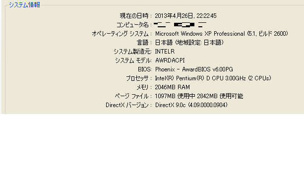 未だに使っているXP搭載のBTOパソコン。スペックは以下のとおり。HDDがぶっ壊れ、仕方なく換装した。ついでに似たようなのをもう1つ増設した。が、追加したほうが認識しないだの何が起こったのか知らんがシステムドライブがIになってるだの予期できたら細木数子の商売敵になれそうな不具合がでて・・・ちまちま手を加え・・・まあまあまともな動作をするようにはできた。とはいえ、未だにシステムドライブがIのままだが・・・。んで。ひさーしぶりに大陸に行こうかと思い立ったわけだ。ZIP版をダウンロード。アホかっちゅーほどのアップデート。これで約2時間w通貨のシステムが変わっとる・・・金は倉庫に入らへんのか・・・?マンボってこんな時期だっけ・・・?物の相場がわかれへん・・・だーれも知った顔がおらんかったのでサイコロで遊ぶ。わびしい上に赤字。もはや言葉も出ない・・・