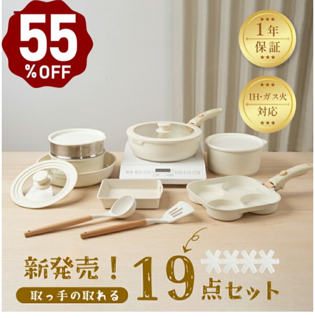 商品詳細は、こちらへ←私の楽天ROOM🔥#スーパーセール対象商品🔥▶当店通常価格21,980円⇒半額にて価格9,750円送料無料#yusukeスーパーセールコレクション【3/4 20時〜55%OFF&MAX50%OFFクーポン】フライパン セット ih 19点 IH〜ガス火対応 取っ手が取れる 3in1 3つ穴円形フライパン 蒸し器 蒸し皿 卵焼き器 ソースパン 蓋付き ふた 保存容器 冷凍 簡単調理 お弁当 蓋 鍋 軽い キッチン用品 食器 調理器具ショップ#柏楽天市場店#食器集め #キッチンの相棒 #時短料理 #一生もの