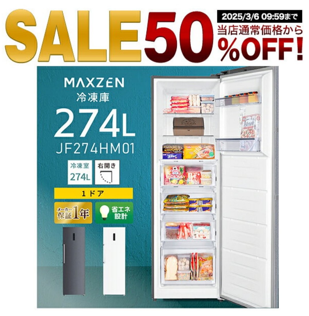 商品詳細はこちらへ←私の楽天ROOM🔥#スーパーセール対象商品🔥▶価格69980円⇒半額にて価格34990円#yusukeスーパーセールコレクション【スーパーSALE限定 50%OFF】冷凍庫 274L MAXZEN マクスゼン 自動霜取り 霜取り不要 ファン式 家庭用 業務用 大容量 右開き ノンフロン フリーザー ストッカー 冷凍 スリム 冷凍食品 ストック キッチン家電 アラーム機能 ホワイト JF274HM01ショップ#XPRICE楽天市場店#生活家電 #時短家事 #暑さ対策 #最新テクノロジー #乾燥対策