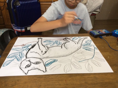 学校の先生の依頼もあり絵を出展してほしいと・・・さてさて いっせいピョンの初体験ですデッサンから教える”はは”なんだ?? ”はは” 何を言ってるの??まあ いっせいピョンの頭の上に????が舞っていましたああああ疲れたと言いながらもクレパス絵に挑戦です好きな色を好きなところに塗っていいよと言うと大胆な色使いをする いっせいピョン何度も何度もクレパスを重ね塗りをしてここで 終わりでなく竹串で・・・ひたすら 猫の毛を削り竹串が持ちにくいと言えば竹の割り箸を削りひたすら 線を削り葉っぱの線が解らないと言えば”はは”の大事な花壇の葉っぱを切り取りいっせいピョンは葉っぱを観察しながらクレヨンを削りますそして完成した絵がしかし ”はは”の大失敗クレヨンを”はは”の大好きな100円ショップで購入少し触っただけで 色がはがれる~~~~サクラクレパス クレパスワニス フィニッシュコート 【OIL522A-220】只今この商品が届くのを待っているところですにほんブログ村