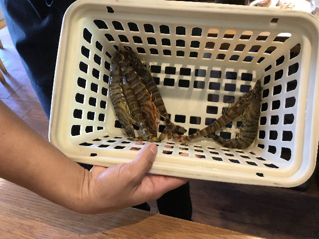 車海老の養殖場に小さなレストランがあって 目の前に活きた車海老を見せてくれて