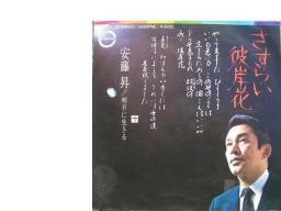 1971年の歌です。ご存知ですか?この人。私は知らなかったんだけど元やくざさんの親分さんで廃業?して俳優になったそうです。今東映チャンネルでヤクザさん映画特集でダーリンが観てるのよ。出てる出てる。わたしゃとんと興味ないけどこのレコード持ってるよってたら驚いていた。でもやくざさん映画のエンディング曲って好きなの多いです。男らしくて渋い歌が多い。でもレコードがめったに見つからない。そのビデオが安くなるのを待ってる。セリフと詩が悲しいの・・・。B面 明日に生きる前向きでいいことですね。