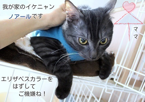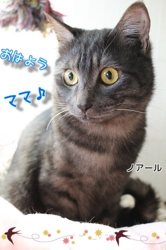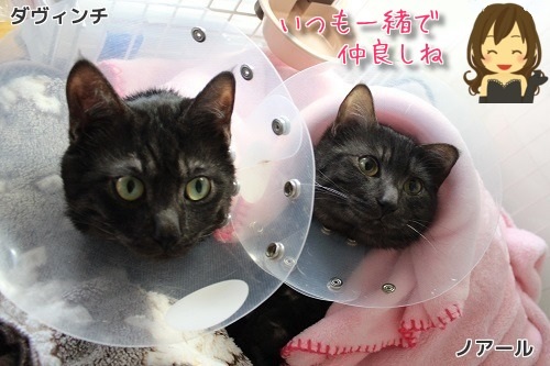 二週間もエリザベスカラーを着けていたのだものね。 やっと外れて自由になった~って あっち舐め舐め こっちも舐め舐めして 綺麗にしなくちゃ~。 愛らしいノアールを見てください(〃ω〃) ダヴィちゃんは、里親候補の友人がお気に入りなのかしら? 匂いがついたハンドタオルの上に、うまく座っているわねぇ(笑) ご飯だって、すぐに食べられるから ママも楽になったわよ♪