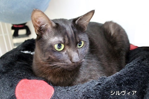 今日も、緊急地震速報が、何度も入っています。 熊本地震で被害に合われた皆様、大変な思いをされていることでしょうね。 これ以上、被害が大きくなりませんようにと願うばかりです。 【2016年4月16日、記】 (○´∇`)φ_本編_φ(´∇`●) ちょっと澄まし顔のシルヴィアです 病院で頂く健康手帳の写真がうまく撮れなかったそうで 「こちらで用意して持っていきます」と伝えていたので 病院に行く前に撮影しました お気に入りのくまモンのおやすみベッドの上に座っています。 シルヴィア、父親譲りの美声の持ち主なのだけれど、写真写りがいまいち悪く・・・ 名前に似つかわしい可愛い写真をどうしても残したかったのですが どうかしら? 本日、シルヴィアの2回目のワクチン接種に行ってきました。 何かと気忙しい毎日で、午前中に空いた時間がなくてね 三日遅れになりましたが、無事に終わりました。 キャリーケースに入れようとすると 「何かあるな~?」って思うみたいで逃げちゃうから 今日は軽装にての移動です。 軽いのでママも楽チン♪ 待合室でパチリ 「赤、似合うわよ~」 診察は、T先生。 シルヴィア、本日の体重は、4.65Kg 「少し増えましたね。」ですって。 体温測定と心音聴診、1回目の時にはしてくれたのに、今日はしなかったわ~。どうしてかしら ( ̄- ̄;)ンー? その後、お尻にワクチンを打ってもらいました。 精算時に写真が付いた健康手帳が戻ってきました。 看護師さんに、「綺麗な猫さんですね。」と声を掛けられて、驚くやら嬉しいやら・・・ この日、お兄ちゃんと子猫達、4匹分の写真と手帳を預けていました。 それぞれの特徴を捉えた写真ですから、 実物は、どう見ても、シルヴィーの顔&毛皮が一番地味なのよね~( ̄- ̄;)ンー? でもね、後で見直したら、 朝の明るい日差しの中で柔らかな被毛に覆われたシルヴィーが とても優しい顔をしていたのよ 黒猫の写真は、少し淡い色彩に調整したほうが表情が判って良いみたいですね。