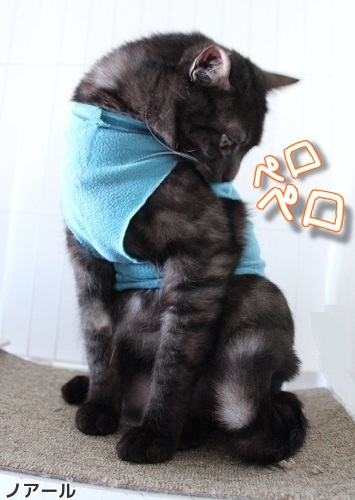 お買い物マラソンが終わりましたね。 お疲れ様でした。 毎回、終わるぎりぎりまで走っている私ですが、 昨日の睡魔は自分でもコントロールできなくて・・・ 日頃の不摂生&睡眠不足のせいでしょうね~(´~`ヾ) ポリポリ・・・ 終了を迎える前にベッドに潜りこみました(〃ω〃) 今日はバッチリ目が覚めていますよ さて今日は、お買い物マラソン中に起きた我が家の猫の事をお話します。 「おはよう、ノアール君」 素敵な笑顔でママに微笑んでくれているのですが・・・ 3段ゲージの下段でケッコリしました。 24日(日)の出来事です。 変な色の吐物でしょう・?ヾ(゚ー゚ヾ)^?。。。ン? 原因はこれです 10 cm×8cmほどの穴が開いているでしょう・・・そう、食べてしまったのです。 ノアールは、ウールサッキングになってしまったのかしら? 4月は何かと忙しくしていて、ゆっくりと遊んであげていなかったせいよね(ノ_-。)治療方法のひとつに、猫が寂しくないように、短い時間の遊びを複数回行うと良いそうです。 この柔らかな布はシルヴィーも食べるのが好きで、ママを慌てさせるのですが・・・ すぐに敷物を、薄手のしっかりとした毛布と交換しました。 これ以上ひどくならないように気をつけなければいけないわね(〃´o`)=3 フゥ 汚物を掃除していたら、今度はダヴィンチが、液体を少しだけ吐きました。 そして、昼過ぎには、大量の未消化のフードを・・・ 原因は・・・セロテープです。 セロテープを食べていました(ノ_-。) ラスターも、セロテープや輪ゴムを食べるのが好きなので気をつけているのですが・・・ 猫って、どうしてこんな美味しくない物を口に入れてしまうのかしら? 翌日の昼前に、今度は消化している汚物を吐きました。 セロテープはどこにも見当たらなかったけれど・・・(_ _。)・・・シュン この後は、普通に過ごしているから大丈夫みたいです。 少し軟便なので、整腸剤を飲んでいます。 そして、26日(火)の出来事です 今度はラスターが皮膚病にかかってしまいました。 以前、病院で貰った消毒薬と塗り薬が残っていたので、それで治療しました。 カサカサとした皮膚が痒いのか、後ろ足で乱暴に掻いてしまいます。 傷が悪化するので、エリザベスカラーをつけました。 今は少し良くなったので、エリザベスカラーを外しています。 余談ですが、美宇宙の肛門嚢炎の傷、少しずつ癒えています。 昨夜は、シルヴィアとジュニアの肛門絞りにチャレンジしました。 シルヴィアの方は、ティッシュに薄茶色の分泌液が出てきました。 ジュニアは溜まっていないのか、何も付きませんでした。 覚えれば簡単なことなので、今度からは忘れないようにしたいですね。