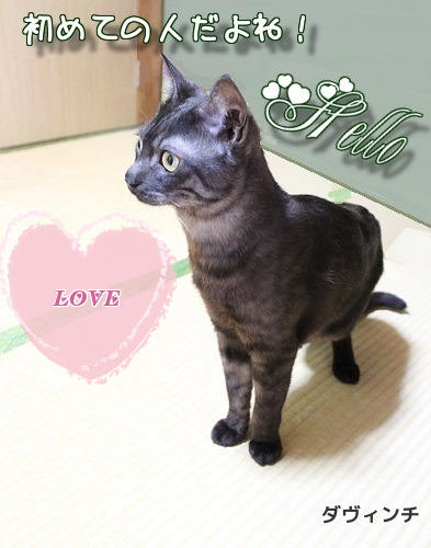 数日前から、我が家に、保険の更新の為に、セールスレディーがやって来ています。 何度も足を運んでいただいた最終日の今日、契約を終え帰られる間際の事でした。 「猫7匹もいるように思えないくらい静かですよねぇ?」 「え・・・そうですか? きっと扉のすぐ後ろで、聞き耳を立てて様子を伺っていますよ(笑) 猫、お好きですか?」 彼女、自宅にチワワがいるそうです。 動物が好きなので、会ってみたいと言ってくれました。 そこで、外交担当のダヴィンチの登場です。 「この子、もうすぐ貰われていきます。とても人懐っこい子なのですよ。」 抜け毛の多い季節なのでママのエプロンを着けてもらって抱いてもらったのよ 彼女は、「コロコロを持ち歩いているから大丈夫ですよ~」と言ってくれたのですが・・・