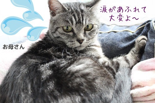 2~3日に前から可愛いくしゃみをしていたお母さんですが、 今朝、ついに本格的に風邪をひいてしまったみたいです。 くしゃみと涙目で、美人(猫)が台無しですよ~。 人間でも、夏風邪は長引くから、早めに病院に行きましょうね。 今日の診察はG獣医さん。 体重は、4.25Kgだったかしら? 「太りましたね。」と言われました。 子猫にしか見えなかったお母さんですが、一年かけて1Kgも太ってしまいました。 避妊手術に加え、運動不足と高カロリーの食事が原因です。 欲しがるので、ついつい子猫達と同じ量を与えていたのですが 肥満は万病の元。 少し気をつけなければいけませんね。 熱は平熱でした。 リフタマイシン(抗生剤入りの目薬)が出ましたが、 「お母さんに目薬を差すのは至難の業です。」と伝えたら 先生が入れてくれました。 飲み薬は、ビブラマイシン(抗生剤)とネオフィリン(気管支の薬)が出ました。 のどにつかえると効き目が無いそうで、カプセルに詰め替えてくれました。 お母さんは、食欲があるので、食事に薬を混ぜると簡単に飲んでくれます。 (○´∇`)φ_お母さんの介護記録_φ(´∇`●) 薬を飲み始めた翌日から、ひどい下痢になってしまいました。 子猫用のシステムトイレでは大きさが不十分な為、便が何度も外にこぼれてしまい慌てました。 下の階に住んでいるお兄ちゃん達に被害が及ばないうちに早くゲージを別けたほうが良いようです。 緊急策として、以前のベントナイトのトイレ(大)に戻しました。 今度は、おもいきり砂をかくものだから、やはり下の階にこぼれてしまいました ビオフェルミン1/4錠を毎食飲ませています。 10日ほど飲み続けて、ようやく形のあるウンチに戻りました。 目薬は、家では点眼しなかったけれど、翌日には良くなったようです。