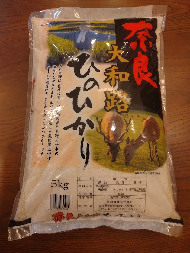 かつて、米の評価が高くなかった西日本や西南日本で、良食味米として採用され一気に広がったヒノヒカリ。「西の横綱」と呼ばれることもありました。ところが、ここ数年の酷暑の中、高温耐性の問題で「ヒノヒカリ」や、以前触れた「キヌヒカリ」が他の品種に置き換えが進んでいます。この話は、少しずつ「代わり」として各県が採用した品種(良食味かつ高温耐性)を、今後のんびり紹介していきたいと思ってます。今回は、キヌヒカリ同様にヒノヒカリを出発点としておさらいします。ほとんど「ヒノヒカリ」しか作らない県ヒノヒカリの生産地は、主に九州と近畿が中心になっており、近畿の中でも京都・奈良より西側の府県から、九州の鹿児島まで広範囲が主要な栽培地域です。九州の雄とも言える米どころ熊本県を筆頭に、「夢つくし」「元気つくし」への移行が進む福岡県、次いで鹿児島県、大分県の順になっています。その後、第5位で初めて九州外の県が出てきますが、こちらが奈良県になります。高温耐性の問題などで、他品種への移行が進む県がある一方で、いまだにヒノヒカリを主力て作っている県もあります。奈良県はその代表で、米全体の生産量は全国でも下位10位までに入る県ですが、検査量の大部分をヒノヒカリが占めていることから、ヒノヒカリの生産量ではトップクラスとなっています。栽培されている品種もかなり少なく、検査対象になっているのは5種類のようです。そのうち、88%がヒノヒカリとなっています。ということで、今回はそんな奈良のヒノヒカリを取り寄せてみました。注文したのは、奈良県大淀町の南都食糧さんのホームページ直売です。サイトを見ると、購入を決断した日の4日前に価格改定がありました(泣)。3880円 購入するつもりで下見していた時より2割近く上がっている気がします。南都食糧さんは米粉に関する新しい取り組みを行っています。契約農家に、ヒノヒカリに加えて米粉として活用できる「ミズホチカラ」を生産して欲しいとの試みをこの数年されているようです。「これこれお米」さんの記事で取り上げられており、経営者さんの顔も見ていたのでこちらから購入しました。ヒノヒカリの特徴ヒノヒカリの生みの親、宮崎県農業試験場の八木忠之さんについて、当時を知る同試験場の押川氏によるインタビューが「ごはん彩々」さんにあるので、こちらを参考に紹介します。昭和60年(1985)年頃までの九州米は、「鳥さえも食わない」と言われるような米が大半を占めていました。宮崎でも、かなり早期の3月に植えて8月に刈り取るコシヒカリの早場米だけは良食味米という評価を受けていましたが、普通期の6月に田植えすると稈が伸びすぎて倒伏してしまうという欠点がありました。九州は二毛作が可能なことから、このような早場米コシヒカリより、食味は落ちても「ニシホマレ」など多収量でかつ二毛作が可能な品種が栽培されていました。しかし、食味の劣るこれらの品種は、政府米としては取引されても自主流通米に乗ることはできませんでした。また、早場米コシヒカリについても、冷蔵保存技術の進展によって、前年度産の新潟県産コシヒカリなどが次の夏まで品質保持できるようになってきたことから、宮崎産早場米コシヒカリは優位性を失いつつありました。このような背景の中、生産者サイドからは、普通期に田植えができてコシヒカリと同等の良食味の品種の育種が要望されるようになります。当初は「ニシホマレ」や「ミナミニシキ」など、当時の九州で主流だった中生種と「コシヒカリ」の掛け合わせを行いましたが成功せず、八木は他地域品種の「黄金晴」(愛知40号)と交配を模索します。コシヒカリが極早生品種、黄金晴が早生品種ですが、九州の地域特性から中生となる個体が出てくるだろうという経験則によるものだったようです。この交配雑種からの個体選抜の際に拘ったのが、「いもち病などの耐性でも、倒伏への耐性でもなく、食味だけを追求した」らしいです。そして、ヒノヒカリのもととなる「み系451」系統となり、1986年からは「南海102号」として九州各県に、試験栽培用として配布されます。その後「南海102号」は、1989年より九州各県で奨励品種指定され、「ヒノヒカリ」として栽培がおこなわれています。ヒノヒカリの原産地について、宮崎ではなく熊本などと思われることがあるようです。これは、熊本県が宮崎県と同時期に奨励品種指定したこと、宮崎県が県内の普通期水稲栽培面積の4倍の水田を熊本県が持っていて、熊本産の方が生産量が多くなってしまったことなどがあるようです。「肥後国のひかり⇒ひのひかり」と思われることもあったとか。「太陽のひかり」から来ていますが、「日向国のひかり」だからヒノヒカリなんだよ!位の事は言ってもいいのかもしれません。開封してみました実は今回、開封した時点でびっくりしたことがあったので開封時の写真がありません。無洗米を注文したはずだ
