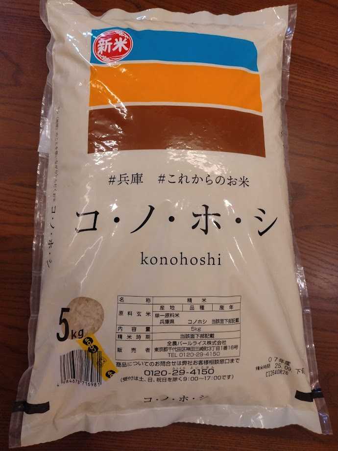 いつの間にか、10万アクセスを超えていました。ありがとうございます。さて、前回に続いて、今年度登録された新しい品種を紹介します。イメージはあまりないかも知れませんが、兵庫県は近畿地方の府県で最も広い面積で、かつ最もコメの生産量が多い県です。ところがこれまで、滋賀県の「みずかがみ」や京都府の「京式部」のような、兵庫県ならではの品種というモノはありませんでした。今回紹介する「コノホシ」は、今年の9/26にデビューしたばかりの品種です。兵庫県が独自に開発し今後の兵庫米を担う銘柄の一つになることを期待されています。コノホシの特徴パッケージは「コ・ノ・ホ・シ」となっていますが、原料玄米のところに「コノホシ」と書いてあるので、恐らく正式な登録名は「コノホシ」なんでしょう。(←「・」は登録できないそうです)公式サイトはこちらになります。いろいろ探してみたんですが、残念ながら系譜図が見つかりません。2024年の時点で、「兵系91号」「兵系92号」の2種類まで選ばれて、そのどちらかが「コノホシ」になったはずなのですが、それ以前にどちらが選ばれたのかすらこの記事を書いている時点では特定できていません。開発経緯は、キヌヒカリの代替です。ここからは、ひょうご相思相米プロジェクトパンフレットの篠木研究員の言葉を引用しつつ説明します。兵庫県南部で栽培されている主要品種「キヌヒカリ」は高温に弱く、白未熟粒が発生し、「キヌヒカリを作るのが億劫で米農家を出てくる人が出てくる」などの問題を抱えていました。このため、2016年より兵庫県とJA兵庫グループがタッグを組んで開発が開始されました。温室を使用しながら、通常なら14年ほどかかるとされている新品種の育種を7年で進めたそうです。それだけ、兵庫県のそして日本の温暖化が進んでいてピンチだ、という危機感があったんでしょう。今年の2月に品種登録を出願、5月に県内の7JA(管内の150haで栽培が始まりました。今年度の予想収穫量は600だそうです。栽培範囲をJA単位で書くとJA兵庫六甲:神戸市、芦屋市、西宮市、尼崎市、伊丹市、川西市、宝塚市、伊丹市及び郡部JA兵庫南:明石市、加古川市、高砂市及び郡部JAみのり:三木市、加東市、西脇市および郡部JA兵庫みらい:加西市、三木市、小野市JA兵庫西:姫路市、たつの市、相生市、赤穂市、宍粟市の南部および軍部JA淡路日の出:淡路市・洲本市JAあわじ島:南あわじ市ということで、淡路島を含む瀬戸内海側の兵庫県が栽培地域になっていると言ってもよさそうです。旧国だと、播磨、摂津、淡路になりそうです。なお、ヒノヒカリとコシヒカリについても大体品種の開発を進めていて、ヒノヒカリの代替品種は令和10年、コシヒカリの代替品種は令和13年度にデビューとのことです。出典:https://web.pref.hyogo.lg.jp/nk12/documents/torikumigaiyou.pdfドタバタ購入記東京在住のkomenumaですが、以前書いたように地方出張が時々あり、クライアントさんが兵庫県内ということもたまにあり、9月に出張が2回ありました。もしかして、コノホシの新米デビュー後に間に合うのではないかと思い、情報が少ないことからインスタのフォローなどをしながら情報を待ちます。コノホシのデビュー日は9/26、今年最後になりそうな兵庫出張はその2日後でした。そして、コノホシの公式サイトを見ると、現時点での販売店も限定的なようです。「初出荷したコ・ノ・ホ・シは、全農パールライス株式会社を通じて、生活協同組合コープこうべのコープミニを除く県内店舗にて数量限定で販売します」とあります。出張先近くでコープの店舗を探して、行けば何とかなりそうです。ということで、仕事先からのアクセスがいい東播地方某所にあるコープの店舗へと向かいます。が・・・お米コーナーに殆ど米がない。冗談抜きで、昨年の8月や9月のスーパーを思い出させるくらいに棚にお米がなく、コシヒカリ5kgや大分のつや姫1kgが、いくつか並んでいるだけ。コ・ノ・ホ・シのコの字も見つけられません。一応ココ、生産元とされている7つのJAのひとつ、JA兵庫南のエリア内なんですが。さて、どうしましょう。諦めるしかないんでしょうか。ちなみにこの店舗は、加古川近郊の山陽電鉄の駅に近い郊外ロードサイト店でした。本来なら、この店舗の最寄り駅から山陽明石駅へ出て、新快速で新大阪へ向かい新幹線に乗って帰るつもりでした。新幹線の指定券はもう取っていて、他の便は空席が殆どなく(万博が原因のようです。ミャクミャクのせいですよ)、後ろの時間が決まっている以上無理はできません。ダメ元でぐるぐる考えてみます。いつもの言葉を復唱、「ヲタの執念なめんなよ!」思いついたのは、以前も行ったJR垂水駅前のレバンテ。土地勘のあるJR西宮駅前のフレンテも考えましたが、山陽電鉄にも山陽垂水駅という駅があったはずで、ここを使うのが乗換時間的にどうやら最短と判断しました。以前は真夜中に駆け込んだあの店舗に、もう一度行ってみる