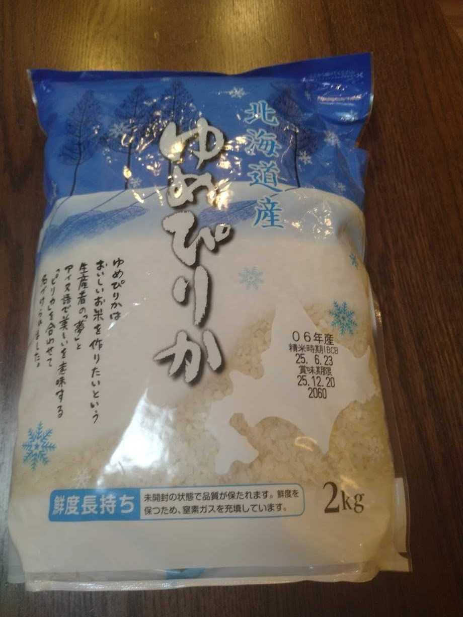 7月の頭に、なかなか注文のお米が届かずにやきもきしていました。以前紹介した「新大コシヒカリ」なのですが、6月上旬に注文しておきながら、1か月近く商品が届きませんでした。大学が栽培しているお米、と考えれば通常と異なる生産・流通ラインだったりしたのかもしれません。一応、今年の端境期に店頭から商品が消える可能性を考慮して、すでに紹介しているようにいくつかの長期備蓄米はありましたが、手元にそれ以外のお米がありません。2kg買って先延ばししようかなと、上池台のウエルシアに寄った際に2kg購入しました。長期保管できるタイプの袋はコシヒカリ、あきたこまち、ゆめぴりかの3択だったため、久しぶりのゆめぴりか購入です。ところが、購入してすぐに帰宅し自宅マンションの宅配ロッカーを開けると、1か月来ていなかった「新大コシヒカリ」が到着したため、こちらは長期保存可能品の利点を生かしてしまいこんでました。結果的に、かわいそうなことをしてしまったかもしれません。ゆめぴりかの特徴以前詳しく書きましたが、北海道産の低アミロース米で甘みが強いこと、もちもち度が大きいことが最大の特徴です。「もち米のような米」とkomenuma嫁は評しています。この甘味は、熱狂的なファンもいる(店舗の米コーナーで目撃したことがあります)一方で、甘くて好きではないという人もいるだろうという、両極端な品種です。パッケージはこんな感じですあれっ?と思われた方がいるいるかもしれません。店頭で「ゆめぴりか」を買われた方なら感じる違和感です。あの、エンジ色っぽいパッケージじゃないの?と。今度は裏面も見てみましょう。表面、裏面共に青基調で、エンジ色のあのマークがありません。そう、認定マークです。出典:北海道米LOVE https://www.hokkaido-kome.gr.jp/variety/yumepirika/ゆめぴりかには厳しい品質基準があって、精米タンパク7.4%以下のものに対して認証マークが付与されています。令和5年度には、記録的な高温で品質基準を満たす原料を確保できなかったという理由で、わざわざ「八十九」という、セカンドラインのようなゆめぴりかが販売されたこともありました。これが付与されていないということは①原料玄米はゆめぴりかだが、認定機関等を通してない②精米タンパク7.4%以下のゆめぴりか原料玄米を材料に含んでいるのどちらかなんだろうと思います。販売者は、埼玉県の「カカシ米穀」さんです。ウエルシアで販売しているお米は、コシヒカリやあきたこまちも、カカシ米穀さんの物が多いです。精米はこんな感じです袋を開けた瞬間から、バニラというかなんというか、圧倒的な「ゆめぴりか」らしい甘さが漂ってきました。粒はきちんと整っており、白濁等も少ないです。それでは、いただきます口にすると、あの強い甘い匂いが漂ってきます。あ、ゆめぴりかの味の主張だなと。以前から紹介していましたが、今回は「意外とゆめぴりかには合わないんだな」と感じたものが一つありました。卵かけごはんは向いていないんですね。口の中で卵黄とごはんがケンカします。それ以外は、明太子の様な魚卵や牛佃煮との相性が良かったです。やはりゆめぴりかです。前2回に紹介したものより、多少甘味やにおいの主張が弱くて食べやすい気がしました。気になった点としては、おむすびにして冷ましてた際の食感でした。水気が少なくなってしまい、あまりおいしくいただけませんでした。以前は、「ゆめぴりかっておにぎり向けに良さそう」と思っていただけに驚きです。・梅雨を越した昨年度米なのでどうしても食味が落ちてしまうから・長期保管可能米にはなってるが、精米からおよそ2か月経過してるから・認証マークのない商品で、品質が一定でない可能性があるからこのどれかが理由なのかはわかりませんが、以前のものほどは満足できなかったことは確かです。