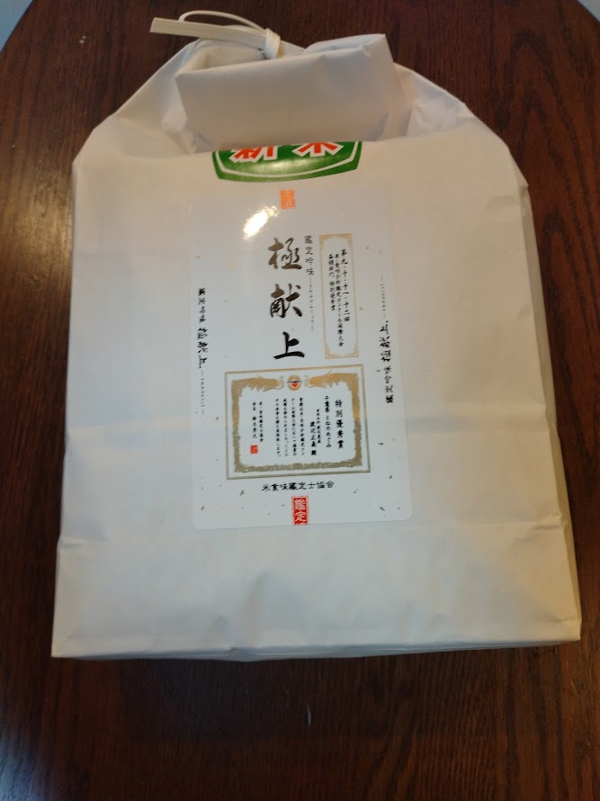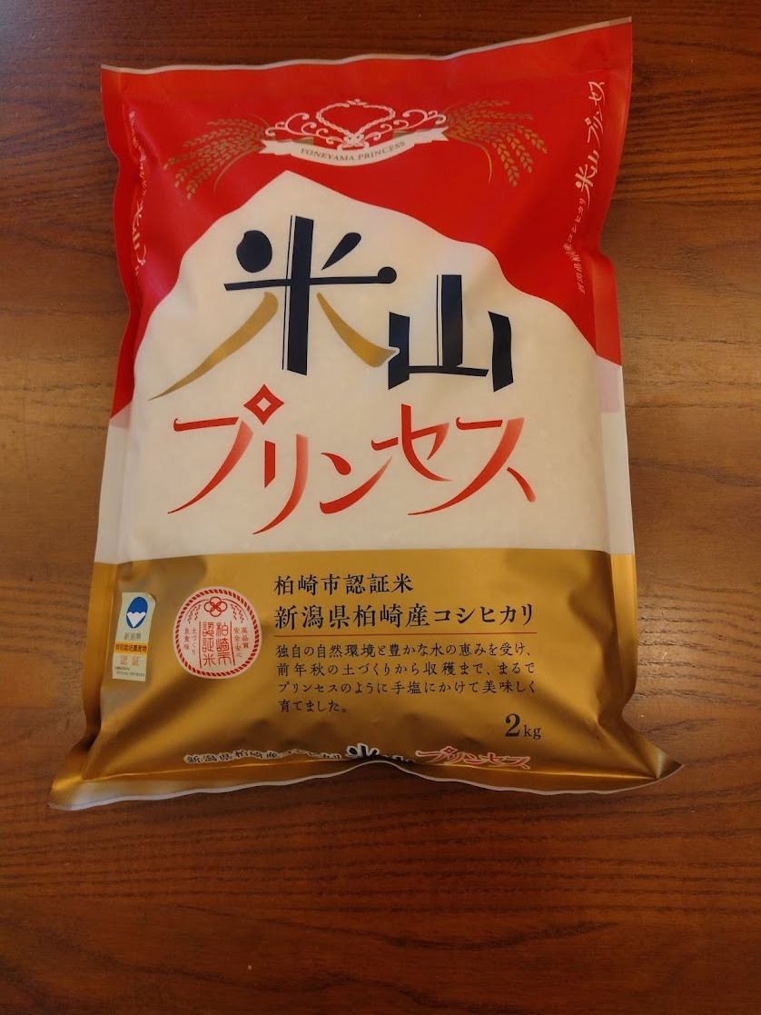 一昨年11月の記事(No.14)で書いた、新潟県産柏崎産のブランド米コシヒカリ「米山プリンセス」が向こうからやってきました。柏崎市では市内産のコシヒカリに、「安心・安全」「品質」「良食味」「土づくり」の4つの基準を定めて、基準をクリアした米を「米山プリンセス」として認証しています。令和5年度米は、酷暑のため市内のほとんどの農家で一等米が収穫できず、上記④基準のうち「品質」を満たすことができませんでした。このため、令和5年度限定で、市では「2等米で1.9ミリメートル以上の大きなコシヒカリ」について、「米山プリンセス・シスター」として認証しました。その際に、次年度以降にもう一度「米山プリンセス」を入手して評価しないとフェアじゃないと書きましたが、その機会は意外と早く、しかもこちらからのネット注文ではなく、あちらからの売り込みに出会う機会がありました。川崎で習い事をしている息子が、川崎駅前の地下街アゼリアの催し物情報を持ってきました。3月末に新潟県物産展が実施され、米山プリンセスが柏崎市のブースに出展されるという情報で、私はすでに閉店後の店舗を子どもと通り過ぎただけでしたが、別の日のもう少し早い時間に、息子が一緒に歩いていたkomenuma嫁にねだって買ってきてくれました。(値段は確認していません。高かったろうな。。。)息子にとって、お米のネタは父親と話をするツールに最近ではなっているみたいです。開封してみました手提げ袋に入って持ち帰ってきました。と、おもいきや「5kg」という不思議な表記が右下にあります。種明かしのような裏面。そう、5kmの商品袋に持ち手部分の穴をあけて袋として使っているようです。商品裏面の方はこんな感じ。生産者の「重野農産」さんのシールと、特別栽培認定のシールが貼ってありました。「コシヒカリBL」についてこれまで書いてきたことはなかったと思いますが、実は2005年以降「新潟県産コシヒカリ」となっている品種のうち極々少数を除く大部分は、厳密には昔ならの「コシヒカリ」ではありません。いもち病に強い「コシヒカリBL」という品種になっており、「産地品種銘柄:新潟県産コシヒカリ」「品種名:コシヒカリBL」として出荷されています。この2つは区別しないということで、BLであっても、従来品種コシヒカリ(新潟県内の農協で種もみは買えず、どうしても作りたいこだわり系農家は隣県富山の民間種苗屋さん等から購入するそうです)であっても、どちらも原料玄米は「コシヒカリ」と表示され消費者は見分けられないようになっています。が、特別栽培だと認定証の都合上こうなるんでしょうか。ちょっと驚きました。米山プリンセスの特徴2023年秋に書いた記事の使い回しです。柏崎市では、2018年から市内で栽培するコシヒカリに、品質・食味・栽培方法に認証基準を設け、基準を満たした米を認証米「米山プリンセス」とすることで、ブランド化を図っています。名称は、柏崎市によると「生産者がお姫様のように大切に丹精込めて育てたお米であることを表現しています。」とされています。wikipediaを見ると、「新之助のお嫁さん候補になる意味で命名」とされており、自分もそれを信じていたのですが、これは他の出典から裏を取れませんでした。「米山プリンセス」の認証基準は以下の通りです。出典:柏崎市HPhttps://www.city.kashiwazaki.lg.jp/soshikiichiran/sangyoshinkobu/norinsuisanka/2_1/9/8597.htmlこの厳しい基準を突破したお米が、認証米「米山プリンセス」として販売できます。それでは、いただきますコシヒカリとしてのバランスはすごく良く、甘み、旨味ともに美味しい特別栽培米だったと思います。そして、二等米を特別に「米山プリンセス・シスター」認定した昨年度と、味はあまり変わりませんでした。やはり、「一等米は見た目」なんでしょう。コシヒカリ特有の甘味があることから、豚の角煮や鶏の筑前煮といった、しょうゆ味と油系の濃い料理で特によかったです。価格的にもなかなかリピートしにくい商品ですが、いつかまた購入したいと思います。