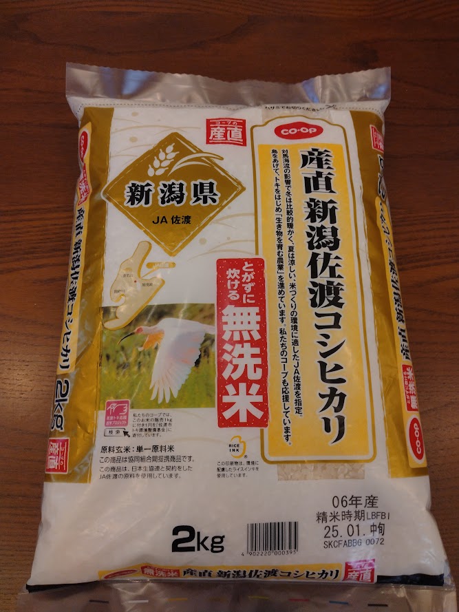とくに珍しいものではないかもしれませんが、生協(coop)のお米です。生活クラブやパルシステムの様な特定の配達型生協ではなく、関東甲信越各県の店舗型のコープで入手できます。が、不思議なことに東京都をエリアとする「コープみらい(旧コープとうきょう)」生協の店舗分布には偏りがあって、komenumaの日常生活圏にはありません。東京の場合には西側や北西に出店しており、南側には実はほぼ店舗がありません。そのため、今はほとんど行くことがありません。かつて横浜市(神奈川は「ユーコープ(旧コープかながわ)」のエリアです)に住んでいた時は、長男が乳幼児だったこともあって、ユーコープの出資会員になって鶴見の下末吉にあるロードサイト型大型生協に安全な(と思われる)食材を買いによく行ってたんですけどね。ちなみにコープみらいの場合、原則は出資者のお店ですが出資していなくても利用できます。今の利用頻度だと、特に会員にはなっていません。今回、その神奈川の生協製品で育ってきたもと乳幼児が成長し、英検を受けることになりました。そして、会場が自由が丘学園だったので送ってきました。本人は目黒区や自由が丘方面には土地勘がなく、小学生を一人で行かせるにはちょっと不安だったので同伴したのですが、試験開始から終了の間やることもないため、自由が丘周辺を2時間ほどうろちょろ散歩しました。私は出身がこの近くなので、このあたりは地図なしでだいたい回れます。ちなみに、自由が丘駅の南口から道を1本入ると、グリーンストリート(九品仏川緑道)という公園型の街路があり、そこから先は住所的には世田谷区奥沢になります。そして、東急目黒線の奥沢駅は実は自由が丘と近く、このあたりからだと歩いて5分強です。この奥沢駅前に、東京23区の南側(品川区、目黒区、大田区)にはない、「ミニコープ」があります。なかなか時代を感じさせるビルです。昭和感漂う駅前の住居兼雑居ビルの地下にあります。この薄暗い雰囲気、実はkomenumaがここに連れられてきていた小学生の頃から、30年以上「全然変わってません」。というか、空き店舗は増加し、悪くなってます。佐渡ヶ島あるいは「サードーガーシーマー」話は変わりますが、キッズやZ世代の間で人気を伸ばしてきた、「けえ【島育ち】」という大学生(開設当時)youtuberさんがいます。佐渡出身の大学生が、様々なものを無理矢理佐渡に結び付けて「サードーガーシーマー」と叫ぶ芸風のものです。310という数字が出てきたら310→310(サド)→佐渡→サードーガーシーマー332という数字が出てきたら、佐渡海洋深層水(海抜マイナス332メートルで採水してます)に結びつけ、サードーガーシーマと叫ぶ、自らを超田舎者と名乗り、「佐渡にマックない。でもマックハウス(衣料品店)ならある!」とか、強烈な佐渡愛が特徴です。この記事を書いている時点で、登録者数が84万人と言いますから見事なものです。去年は「佐渡フェス」をやって、全国からキッズや保護者を佐渡に集め、交流人口を増やしました。1人のクリエイターによる、とてもスケールの大きい、地域おこしに成功した例だと思います。子どもがこの動画に夢中になり、komenuma嫁も「一度佐渡のお米も買ってみたい」といい始めていました。この日の生協のラインナップは、北海道ななつぼし、秋田あきたこまち、岩手ひとめぼれ、佐渡コシヒカリでした。この中でなら、念願の佐渡コシヒカリです。裏面はこんな感じです。原料玄米は「新潟県佐渡 コシヒカリ」販売者は日本生活協同組合連合会になっていますが、製造者は「全農パールライス株式会社」でした。自前で工場は持ってないんですね。イメージと違い驚きました。なお、ここで取り扱いのあった生協のシリーズ4種うち、ひとめぼれのシリーズは木徳神糧さんが、ななつぼしとあきたこまちは神明さんがそれぞれ生産者欄に記載されていました。精米はこんな感じです透明感のあるきれいなコシヒカリでした。それでは、いただきますちょうど、上の子のお弁当があったので初日は鮭のおにぎりで頂きました。冷めても美味しいです。そして甘い。新潟3大産地の理由の1つはこれでしょうか。おにぎり好適米はいろいろ探していますが、「コシヒカリ」は必要条件も十分条件も満たしています。「冷たくてもおいしい」「もっちりしている」という要件を考えると、長年のコシヒカリの人気にはおにぎり(家庭用に限らず業務用含む)によるところもあるのかなぁと改めて感じます。もちろん、温かいご飯にしても、どのおかずと相性も良くおいしいです。ごちそうさまでした購入はこちらから購入は首都圏の生協で、ということになるかと思いますがJA佐渡のコシヒカリであれば、産直サイトがこちらにあるので購入できるかと思います。