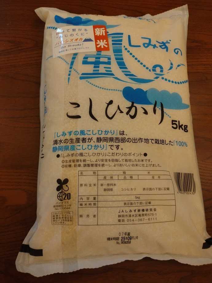 以前から紹介したいと思っていた商品です。このブログ、47都道府県全県の米を紹介したいと思っていますが、静岡県産は未紹介でした。静岡には、静岡県が開発した「なつしずか」という早場米があるのでそれを紹介したかったのですが、ネット上での販売期限が短く、掲載されていたと気づいたのは販売期間の次の日でした(悔しいです)。それ以外で、以前より静岡のお米で「紹介したい」と思っていたのがこれになります。去年は、年末位で売り切れてしまっていた記憶があるのですが、今年はその傾向がより顕著でした。限定販売で、販売期限が9月15日までとなっています。再販売があるのかはわかりません。仕方がないので、見つけたその日にポチしてしまいましたよ。会社の昼休みに。「しみずの風」コシヒカリの特徴品種はコシヒカリです。なので、品種や味としての大きな特徴はありません。が・・・この商品の特徴は、栽培地がこの販売元のJAしみずのエリアではなく、「静岡県西部の出作地に、JAしみずのメンバーが行ってそこで農作業をしている」という点にあります。静岡県という県は、東西に細長い県のため、「浜松市を中心とする西部」、「静岡市を中心とする中部」「沼津市を中心とする東部」「東部に含まれることもある伊豆」の3~4地域に区域分けされ、特に西部と中・東部は江戸時代の旧国も遠江と駿河で異なり、言葉や気質も異なるとされています。栽培地は「静岡県西部」以外のことが書かれていませんが、JAしみずのある静岡市清水区はこの中部地区の中でも東寄りにあるエリアです。出典:静岡県ホームページ https://www.pref.shizuoka.jp/kensei/information/kengaiyo/p端rofile/index.htmlオレンジ色が東部地域で静岡市はその東端、緑色が西部地域になります。そうすると清水区からわざわざ県西部まで出作に赴き、収穫物はその地域のJAではなく清水区のJAまで持ち帰った上で出荷している。こういうパターンはあまりないんじゃないでしょうか。JAでの取扱いって、農地のある場所への属地的なものではなく、耕作者の居住地による属人的なものなんですかね。就農者の減少による耕作放棄が見られるときに、同じ県内の都市部では生産規模を拡大したいけれども農地を拡大できないといったケースがあれば、今後このような出作は増えてくるのかもしれません。耕作放棄地を増やすよりも、国土保全の観点からは好ましいと私は考えます。開封してみました販売店の「JAしみず アンテナショップ きらり」さんの箱に入っています。アンテナショップのパンフレットなどは入っていませんでした。JAしみず耕種研究会さんが販売元です。同じ住所にJAの集荷センターがあるようです。野球が好きな人向けに書けば、くふうハヤテの本拠地「ちゅ~るスタジアム」の近所です。裏面はシンプルでした。精米はこんな感じです見た目はごくごく普通のコシヒカリでした。白い粒が少ないですが、猛暑の今年の静岡の気候はどうだったんでしょうね。それでは、いただきますコシヒカリということで、甘みのある味と極端すぎないもちもちの食感は同じでした。西日本産コシヒカリのほうが粒感があって、東日本産コシヒカリのほうがややもちもち度が高い印象がありますが、この基準だと静岡県は東日本ということになりそうです。そのままで食べてもおいしいです。朝食だったら、みそ汁だけあればそれでいい位で、ここしばらくでいただいたコシヒカリの中でも高い評価をしたいです。「そして、コシヒカリということで、あまり合わせる料理にはこだわりませんでしたが、そぼろ等の肉系や、姫路土産のアナゴの佃煮、味の強い海産物(マグロとサーモンの刺身です)との相性が良かったです。このほか、変わったものではヤンニョムとの組み合わせが結構よく、「さすがコシヒカリ」と感心しました。そしてもう一つ、ここに書くのが恥ずかしいんですが、とても相性の良かった食材がありました。ケンタッキーフライドチキン。強い揚げ物ですからね。このお米の甘さに負けてしまったものは、イカの刺身と、ゼンマイの煮つけでした。このあたりは、もっとさっぱり系のお米のほうがいいんでしょう。あと、我が家のチビたちは、頻繁にお代わり所望しているのでお米自体が美味しかったんだろうと思います。ごちそうさまでした購入はこちらからJAタウンさんで販売されていますが、期間限定販売だったので現在では既に売り切れになっています。なお、去年見た限りでは何度か再入荷がありましたので、再販の機会はあるかもしれません。一応リンクを貼っておきます。