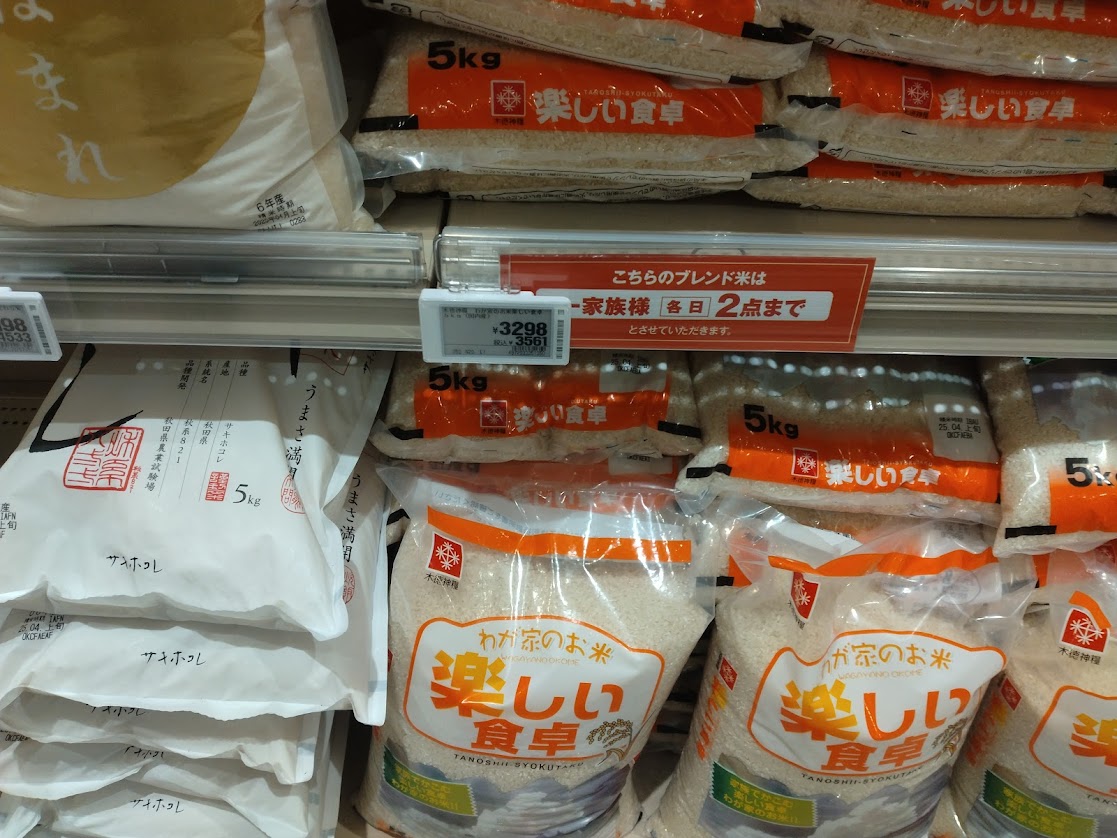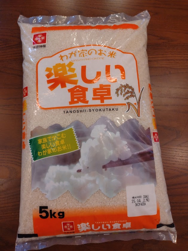 検索で来られた方へ。この記事は、江藤農相時代の入札方式での最初の放出備蓄米についての記事です。小泉農相によって行われた、古古米の放出備蓄米の購入記はこちら。3月末から放出が始まった備蓄米、余計な混乱を避けるために「備蓄米と表記しないで欲しい」と最大入札者のJAが言っています。江藤拓農水大臣(自民党・宮崎2区選出)は、「ヒントがあり、分かる人が見れば分かる」と言っており、これはkomenumaのような毛の生えた素人でも、途中まではわかります。「生産地がなく、複数原料米で、単一銘柄米となっていないこと」(⇒三重県産と富山県産を混ぜたコシヒカリで、複数原料米コシヒカリ100%となっているようなブレンド米もこの国のマーケットにはあります)「生産年が書かれていないこと」(⇒生産年の書かれていない)これが一つの基準です。ただし、これだけでわからないのは「備蓄米と同じ製法で作られた昔からあるブレンド米」なのか、それとも「備蓄米の入ったブレンド米」なのかということです。さすがに、個々の見分けは不可能と言い切っていいと思うので、マスコミが取材して明らかに「備蓄米が入っています」と精米業者さん側が答えている商品を探してみました。4月の上旬、午前休を取っていた日にいろいろ検索してみたところ、どうやら米穀卸大手の木徳神糧さんが販売している「楽しい食卓」というブレンド米には備蓄米が混入されているというニュースを見かけました。」であれば、似たような商品の中からこの商品を探してくるのが確実性は高いということで、旧twitterの報告などを見ていると、オーケーストアとイトーヨーカドーでの購入報告がありました。土曜日に、大きな病院へ見舞に行くついでに梅屋敷(大田区大森西)のオーケーストアに行ってみるも見当たらず、夕方には鶴見で子供の別の用があったため、待ち時間に鶴見のリコパ(ヨーカドーが食品核店舗)へ行ったところ、「何かがあった跡」に店員さんが一生懸命他の銘柄(金芽米とか)を置いて空の棚を埋めているところに遭遇しました。「出遅れたな」と思いつつ、翌日、開店直後のヨーカドーならあるのではと考え動きます。思いつく店舗は大井町店と大森店。大森店の方が、ヨーカドー本社(品川区南大井)から目と鼻の先にある旗艦店のため、こちらを狙い朝10時半くらいに行ってきました。ありました、ただし、3段あるうちの上から一段目は、すでに空っぽになっていましたが。お値段は3298円(税込み3591円)実食レポートがもう少し先になりそうなため、今回は先に購入だけで記事を書きました。