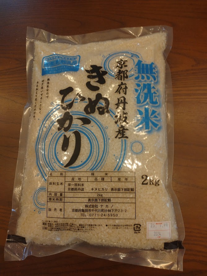 新米の価格がさっぱり読めません。また、通販の状況も、去年の米騒動以降不安定なままです。去年はふるさと納税で入手した品種を中心に紹介しましたが、納税額自体が上がっていることからこれは行っていません。このため、今年は早場米の紹介は少なめになるかと思っていました。例えば、静岡の「なつしずか」を売っている店舗は、新規顧客打ち止めで購入できないので諦めたりもしています。(実は、検索には引っかからなかったんですがJA遠州夢咲で限定販売していたみたいで、気付いたときには販売終了でした。価格は送料込み5800円。悔しいので来年狙います。備忘録代わりに記載)それでも、アンテナを張り巡らせていたものの1つに高知県で最も早く収穫される品種、「南国そだち」がありました。こちらの品種は、一昨年に「よさ恋美人」を購入した店舗で取り扱いがありました。8月になったら問い合わせようと思って、7月末にそちらのお店を覗いてみたら、価格が明記されていました。販売価格 税込5370円 これに、東京都までの送料1100円がかかります。ちなみに去年の価格は2700円でした。ざっと2倍です。去年の価格を知っていただけに、さすがにこれでは購入する気にならず、あと送りにしていました。なお、7月17日付の農業協同組合新聞の記事によると、「南国そだち」の60kgあたり概算金は2万2700円で、昨年当初の概算金額より7200円高くなっているとのことです。それでも、1.5倍です。手元に令和6年度産の長期保存米も4kgあるので先にそっちを消費して、その頃何か他の早場米(ハナエチゼンとか)を、金額見ながら買おうとしていました。ところが8月の中旬、子どものバースデーケーキの受け取りで大森の駅ビルに行きました。このビルの地下には、楽天ポイントが貯まるので私が大好きな東急ストアがあります。牛乳とかカレー粉とかを買い、レジを通ってからエスカレーターへ向かう動線に米売り場が見えてきました。これ、ネットで見たことある。中身は確か探してた「南国そだち」ですやん。お値段は、税抜き4,280円(税込4,622円)です。原料玄米を確認すると「南国そだち」です。この金額ならまあ、うちに持って帰るのに重いのを我慢するということで購入しました。棚の左側にあるのは宮崎県産のコシヒカリ。こちらは、同じ商品を同じ店舗で去年撮ってました。チビ1の手足が映り込んでいます。すみません。今年:4kg 税抜き3,880円(=kgあたり970円)去年:5kg 税抜き2,680円(=kgあたり536円)1.81倍。つまり、81%の価格上昇です。こう考えると、最初の米屋さんの「南国そだち」の上昇率も、誤差の範囲なのかもしれません。今期は、この位の上昇率を覚悟しておく必要がありそうです。頭は痛い、懐は寒いです。そうそう、今回の米価高騰でこの冬にでも無洗米を注文しようとしていた米穀店が閉業していました。クレソン式無洗米機という機種でやってます、という触れ込みだったので、福岡米か九州米をこちらで注文しようかと思ってたんですが。。。ショックです。