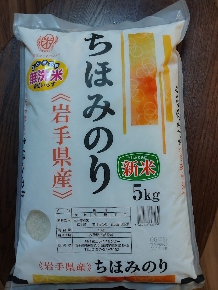 「あきだわら」「あきあかね」と続いた、「新潟米図鑑」には載っているけど新潟県産が見つからない、さらに言えば他県産もほぼ入手できないというシリーズ、3回目で最終回です。なかなか取り扱いのない品種、楽天では1件しか取扱業者がありません。普通精米の2個(10kg)セットの在庫状況が毎日のようにありなしを移動していて、そのうちなくなりそうだったので年末に慌てて購入しました。今年も、夏場の米不足に対する先行きは暗いんじゃないでしょうか。なお、こちらが購入したものは無洗米(店舗HPによるとNTWR方式)です。平成31年度に、「ちほみのり」は新潟県では産地品種銘柄に指定されているはずです。実は、昨年までは楽天にも出店している佐渡の業者さんが栽培していたため、簡単に入手できると思ってマークしていませんでした。(この業者さん、今年から「にじのきらめき」の取り扱いを始めたので、生産側でそれに切り替えられたのかもしれません)この業者さんの取扱いが変わったいま、改めて他の新潟県産を探してみるも見つかりません。唯一見つかったのは、上越妙高駅の物産館が取り扱っている写真をFacebook上に掲載しているだけでした。新潟県外で見つかったのは、岩手県水沢市の「第三ライスセンター」さんが販売されていたものです。こちらの販売元さん、昨年度は「どんぴしゃり」という岩手県ローカルの銘柄を販売されていたため、何度かHPを閲覧していました。おそらくそのご縁で、AIが広告欄に載せて来たんだと思います。(なお「どんぴしゃり」を今期は販売されていないようです。栽培されていた農家があったとしても、業務用米などで他に引き取られてまとまった量が手に入らなかったりしたんでしょうか。)「ちほみのり」の特徴2005年に生まれた品種で、直播き、多収、良食味の「萌えみのり」(東北地方中心に栽培されている業務用米で、東京だと「サミット」の精米売り場にあります)を母として、多収でいもち病耐性を持ち合わせた「青系157号」を父として掛け合わせ、育成されました。農研機構の紹介だと、東北地方中部ではかなりの早塾米だそうで、栽培も「あきたこまち」「まっしぐら」の作付けが可能な東北以南が栽培適地とされています。出典:新潟米図鑑Vol.2 https://www.pref.niigata.lg.jp/uploaded/attachment/186515.pdf新潟米図鑑だと、「あきたこまちよりも1~3割多収、安価で質の良いお米として業務用途での利用が期待されている」とのことです。位置づけだと、「極早生で、業務用の中の業務用」という感じなんでしょうか。出典:新潟米図鑑Vol.2 https://www.pref.niigata.lg.jp/site/syokuhin/216817.htmlあとは、「ゆきんこ舞」が未購入ですね。できれば今年中に。生産量だと、図鑑にあった新潟県でも、今回購入した岩手県でもなく、秋田県産が全生産量の半分以上を占めていますね。自身を秋田県生まれと書いている(里帰り出産なだけですが)komenumaですが、恥ずかしながら秋田の業務用米としては「ゆめおばこ」「めんこいな」しか知りませんでした。開封してみました第三ライスセンターからの宅急便は、紙製米袋の再利用でした。まだ試しておらず、当然記事の書けていない岩手の地域ブランド「銀河のしずく」の袋です。特に同封物はありません。原料玄米は、当然岩手県産のちほみのりです。裏面は真っ白です。この袋、感触がぶ厚かったんですがlimexでも使用しているんでしょうか。精米はこんな感じです白っぽい背白米が目立ちます。東北地方向けの品種なだけに、高温耐性はないのかもしれません。それでは、いただきます業務用米ということで最初から覚悟していましたが、味の方は「ぜんぜんしない」に近い薄いあっさり・さっぱり系のものでした。食感はやや硬めです。新潟米図鑑でも、「適した料理:チャーハン・丼もの」とありましたがその通りだと思います。普通の家庭カレーと、かけるタイプのドライカレー(ほぼキーマ)の土台としてもいただきましたが、主張がない分とても相性が良かったです。逆に、お米としての主張がほとんどないのと、粒が立っている品種でもないため卵かけごはんとしての相性はそれほど良くなかったです。せっかくいい卵を頂戴して、あっさりだからあうかなと思っていたのですが。ごちそうさまでした。購入はこちらから米 5kg 白米 ちほみのり 送料無料 お米 精米 ライス 令和6年 コメ ご飯 岩手県産価格:4,250円(税込、送料無料) (2025/1/18時点)楽天で購無洗米の方がアフィリエイトから出てこなかったので、普通精米です。そして、貼り付けてみて気づいたことですが、どうも昨年末に私が購入した時よりも値上がりしているみたいです。12月中旬に私が購入した際には無洗米加工が4050円(注文履歴より確認済み)、普通精米はそれより安く4000円を切っていたと記憶しています。このクラスのお米でこの現象が起きているということは、お米に関心を向けていると次の事態が想像できます。「今年も、業務用米の確保が精いっぱいで、夏ごろ