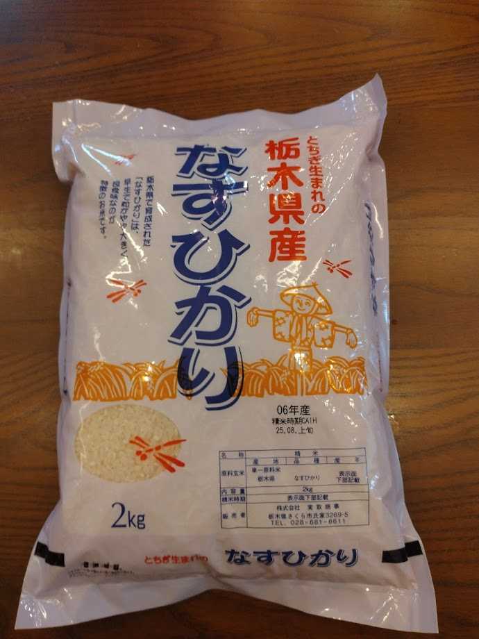 この夏休みは、日光の方に行ってました。日光と聞くと、日光東照宮や華厳の滝、いろは坂に中尊寺湖を思い浮かべる方が結構多いかと思います。東京や神奈川などの南関東出身の方なら、「就学旅行で行ったよ」という人も多いのではないでしょうか。しかしながら、日光市は平成の合併の結果栃木県の約22.6%を一つの市で占めるようになった超巨大自治体になってしまいました。この結果、鬼怒川温泉も、足尾銅山も全部日光市です。さらに言うと、日光市と聞いて多くの人が思い浮かべる日光駅から東照宮のあたりは、現在では新しい日光市の中心ではなく観光エリアのように特化していて、市役所は合併前のもとの今市市役所が「日光市役所」を名乗っており、市全体を見た場合の中心市街地も下今市駅の周辺とその郊外ロードサイトのあたりになっています(このあたりに、平地が多いのもあります)。その日光市さんとは、以前一緒にお仕事をしていたことがあるので、日光地域の観光地や鬼怒川温泉以外にも、穴場のようないい場所があることは知っていました。今年の夏休みはそんな、キャンプ場と温泉と人口数百人しかいないようなエリアで過ごし、帰り道で今市中心部にある道の駅と、そのすぐ傍にある観覧車のあるショッピングモール「日光ランドマーク」に寄ってきました。ついつい、お米コーナーにもよってしまいます。新米が出回り始めた時期なので、お土産として持ち帰りが楽な2kg袋で購入。販売価格は1680円。5㎏だと1980円。産地な分、東京より気持ち安いですかね。実は、栃木県はコシヒカリ王国です。新潟県と千葉県に1年遅れて1956(昭和31)年にコシヒカリを奨励品種として採用した県です。県北部の寒冷気候地域での栽培に向いているという判断でした。「あぜみち農優会こしひかり」や「大田原産こしひかり」がありました。確実に美味しいのを食べたければ、冒険せずにこっちでしょうか。でも、せっかくなので未購入の「なすひかり」を購入しました。写真右下には、以前紹介した栃木南部の品種「とちぎの星」もあります。なすひかりの特徴なすひかり(栃木7号)は、1990年に栃木県農業試験場で交配が始められ、2004年に品種登録された栃木県オリジナルの品種です。全農栃木のホームページによると、「なすひかり」の歴史は以下の通りです。「なすひかり」は、栃木県のオリジナル品種として早生で耐冷性があり、良食味・良品質を目標として育成されました。 「栃木7号」と命名し生産力検定本試験を始めた平成10年は冷害の年で、この年の栃木県の作況指数は93と「不良」でした。「なすひかり」はコシヒカリとの比較では118%の収量があり安定した収量性も確認できました。 現地試験を実施した6年間の間に、県内の品種作付の変化や全国的な米生産にも変化が生じてきました。全国的に産地間競争が激しくなり各県オリジナル品種による販売戦略が討ち出されるようになってきました。このような時代の変化もあり、平成17年1月に品種登録申請をし、同年3月に県の奨励(認定)品種に採用されました。特徴としては・早生種で収量が多い・良食味米・品質が良く粒がやや大きい・寒さに強く倒伏しにくいといった点がありますちなみに、以前「とちぎの星」の記事で紹介しましたが、栃木県は南北で気候が結構異なり(南は夏に猛暑、北は寒冷地)、県北部は「コシヒカリ」「なすひかり」が、県南部は「とちぎの星」「あさひの夢」が主要な栽培品種となっています。パッケージはこんな感じです再掲です。「栃木県で育成されたなすひかりは、早生でやや大きく良食味なのが特徴のお米です」とパッケージに書かれてます。もう少し、一般の方に分かりやすい表現のがいいと思うんだけどどうでしょうか。販売者は、日光市の東隣にあるさくら市の「実取商事」(みどりしょうじ)さんです。裏面は系譜図です。私好みですが、説明書きと合わせてどれだけ一般の方に伝わるんでしょうか。精米はこんな感じです目視した限りでは、粒は確かに大きい気がします。それでは、いただきます初日は、子どもの塾弁当向け混ぜ込みご飯おにぎりになってしまいました。ひじきごはんにしても、粒が大きくて美味しいことはわかります。冷めても美味しくいただけました。2日目は、朝食で頂きました。コシヒカリ系のもちもち感があるけれども、口当たりはさっぱりです。これ、朝食向けの品種かもしれません。明太子との相性もいいです。また、粒が大きいことから卵かけご飯にも最適でした。この他にあったおかずとしては、栃木の道の駅で買ってきた山菜との相性も良かったです。ごちそうさまでした。購入はこちらからこちらの商品は、amazonで発見しましたが現在品切れ中という扱いになっています。ごめんなさい。実際に購入した店舗は、「かましん 日光ランドマーク店」さんになります。