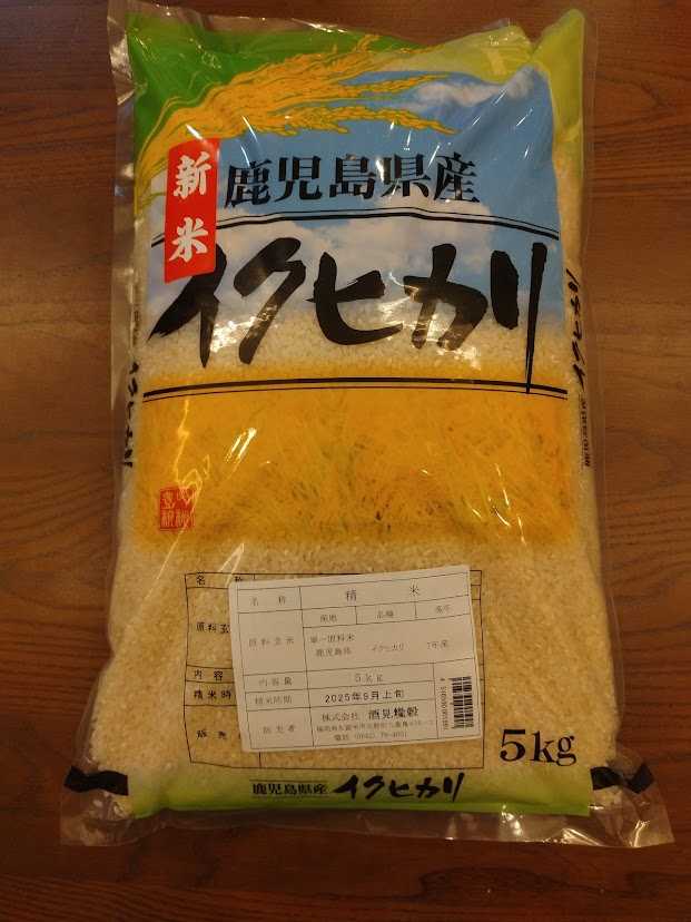 新米の時期になりましたので、現在新規購入はそっちにシフトしています。昨年は、この銘柄を食べていないという銘柄があっても、ネット上で探しても探しても売り切れになっているということがよくありました。今回紹介する、「イクヒカリ」はそんな品種の一つでした。一昨年は、遅い時期でも見かけていたのですが。。。新米の時期になったので、いつも見かけていたネット上の取り扱い店舗に在庫が戻り、多少高いけど購入してみました。去年のオンライン上の商品払底はどの店舗も激しく、この「イクヒカリ」など九州産のお米を扱っている今回購入した店舗「九州米大将」さんのホームページだと、このほかに佐賀県産の「田んぼの夢」という品種がありますが、こちらもある時期からは他の店舗を含め全く見かけませんでした。全然別の産地・店舗の話になりますが、三重県の「みえのゆめ」や、北海道の「きたくりん」なども、同様にこれまでいつでも売っていたものが、一旦品切れになったあと、ほぼ見つけられませんでした。要するに2025年上半期のお米事情は、1.「お金を出せば手に入る、聞いたこのある銘柄もの」(生産量が多く、売り惜しみされていたブランド米)2.「お金を出してもどこにも在庫がないもの」(名の通らない品種で、業務用米等早い時期に確保にされてしまったと思われるもの)3.「お金を出したくなければ、外国産米か政府備蓄米」という状況だったと思っています。イクヒカリや田んぼの夢は、このうち2に当てはまったんじゃないでしょうかね。今回、新米の時期が来て、楽天アプリの「おすすめ」欄に去年一生懸命検索していたこの品種が現れました。それならと、慌ててこの新米を買うのみです。が・・・、「発送しました」というメールを見てびっくり。同じものを2つ買ってました。ポイント購入をしようと、運用中のポイントを引き出しなどをやってたのが原因かと思いますが、なかなか痛い失態です。ここから先の新米と早場米の消費プランは大きく練り直しですイクヒカリの特徴福井県農業研究所が2004年に開発した品種で、福井県と鹿児島県で奨励品種に指定されています。鹿児島県内では、全域で栽培されているわけではなく、品種ごとの栽培地域や特徴を細かく掲載されている「鹿児島パールライス」さんのホームページによると、県南東部の大隅地域(大隅半島)が主な産地となっているようです。出典:鹿児島パールライス株式会社 https://kapr.shop-pro.jp/?mode=f14この地図の緑色の地域(鹿屋市、志布志市、東串良町、大崎町)の南側から、さらに大隅半島の南端にかけては「肝属郡」に属している地域です。読み方は「きもつき」で、漢字は肝属・肝付の両方があるようです。ちなみに、今回の購入先の「九州米大将」さんのホームページにある画像には、「JA鹿児島きもつき」という文字を記してある画像があったことから、こちらの産品かと思われます。肝付地区での、コシヒカリからイクヒカリへの全面転換については、経緯を記しているブログが、JA鹿児島きもつきの隣のJA、JA肝付吾平町(きもつきあいらちょう)さんのHP内にありました。こちらでは、平成22年度より全面転換されているようです。コシヒカリの代替品種として、鹿児島では早場米として位置づけられています。食味の特徴も鹿児島パールライスさんから引用しますが、「もっちりとした食感で、炊き上がりはコシヒカリよりふっくらとしており、冷めた時の粘りはコシヒカリよりも強いために、おにぎりやお弁当などにオススメのお米です。」と記載されています。鹿児島県における品種別の生産量です。生産量の43%がヒノヒカリ(随分高くてびっくりしました)、次いで鹿児島県が開発し県内でしか生産していない特A評価実績のある「あきほなみ」が25%と続いており、「イクヒカリ」は全体生産量の8%程度です。作期分散のための品種で、かつ地域も限られているのでこの程度なんでしょう。開封してみました新米のシールが張られ、大きく「鹿児島県産イクヒカリ」と書かれています。裏面はめちゃくちゃシンプルです。原料玄米はシール処理で、「鹿児島県 イクヒカリ 7年度」となっています。精米日は9月上旬です。注文日は、楽天ワンダフルデーの1日で、届くまで3日程度だったことから受注後に精米をかけているのかもしれませんね。販売者は「酒見糧穀」さん。福岡県久留米市の会社です。ネット上での店舗名は「九州米大将」さんとなっています。この酒見糧穀さん、「酒見農産」という別会社が米と野菜の栽培も行っているようです。精米はこんな感じです透き通った綺麗な白米でしたそれでは、いただきます間違えて2つ(10kg)購入したことから、どう対応するかkomenuma嫁と作戦会議です。パン食を減らして、子ども達の朝ご飯をおにぎりにするとか、休日の昼食に時々混ぜ込みご飯をやろうとか、ちらしずしを作ってみようとかその位ですが。あとは、戴いて来た缶詰カレーと、タイカレーのレ