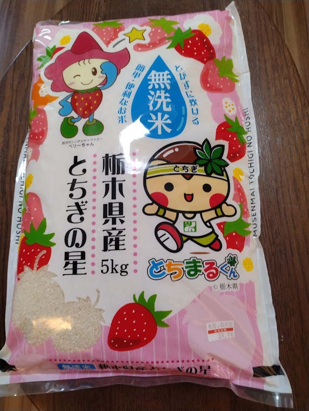 amazon、最近あまり購入してません。もともと、書籍以外は楽天かyahooショッピングが中心で、このブログを立ち上げてからは書籍まで楽天にシフトしていたため、ブログ開設後1年半の間にこれだけ米の購入レビューを書きながらも、実ははじめてとなるamazonマーケットプレイスでの購入品紹介です。そして、実はジャケ買いです。狙いは、パッケージ右下の栃木県のキャラ「とちまるくん」になります。ふるさと納税の返礼品のラインナップに似たような品が以前あり、このブログのネタ用に狙ってました。いつの間にか見かけなくなっていたのですが、高温耐性があるお米紹介の一環として「とちぎの星」を取り上げようと検索していたところ、amazonのおすすめに偶然出てきました。鹿沼市のキャラ、イチゴをモチーフとした「ベリーちゃん」とのコラボです。このパッケージを見て、無洗米のみ販売だったこともあり、水の冷たい今のうちにと購入してみました。とちぎの星の特徴栃木県の生産量です。業務用としても評価の高い「コシヒカリ」)が高い割合(65%)を占めており、「とちぎの星」はそれに次ぐ第2位(15%)となっています。「とちぎの星」が生産量2位とはいえ、実は生産地域はコシヒカリとはあまりかぶりません。以前、「ゆうだい21」の記事を書いた際に借用した全農とちぎのホームページ「とちぎ米のこだわり」に掲載されている地図を、再度お借りします。出典URL:https://www.tochigimai.jp/okome/feature/「とちぎの星」と「コシヒカリ」を主要な作付け品種としている地域は、実は異なります。おおむね、夏に埼玉・群馬同様の酷暑の広がる県南部が「とちぎの星」および「あさひの夢」の2品種の栽培地域、標高が比較的高く気温の低い県北部が「コシヒカリ」および「なすひかり」となっています。栃木県は、まだ評判の定着していない時代の「コシヒカリ」の奨励品種指定を、新潟県・千葉県に続く全国3番目の1956年に行った県ですが、「県北部の寒冷地向け品種」として登録したくらいです。(余談ですが、マーケットプレイスではなくamazon本体のPB品目に「なすひかり」があるので、これはこれでそのうち購入して紹介するつもりです)とちぎの星の特徴は、栃木米のホームページで、栃木県の専属広報芸人のようなU字工事さんが解説してくれています。平成26年にデビューした品種で、母は栃木11号、父は「なすひかり」になります。大粒で豊かな甘みがあり、炊飯後も粒がしっかりしている、暑さと病気に強いという特徴があるようです。特に高温耐性については栃木県も力を入れているようで、は「とちぎの星」の栽培技術の向上(高温期の条件が異なる地域での栽培法の研究)を図るために、高温耐性への栽培試験を県外(西日本)で行い、栽培マニュアルの更新をするとのことです。将来的に、他県に出してみたいといった野望でもあるんでしょうか。開封してみました随分とでかいアマゾンの箱です。アマゾンでの購入は米以外に心当たりがないので米なんでしょうけれども、こんなパッケージで置き配してくるとは思いませんでした。で、中を開けてみると段ボールがもう一つ。これ、どう考えても環境面で無駄だろ。。。小さいほうの段ボールを開けると、これが出てきます。アマゾンの伝票も、農業生産法人ワタナベさんの伝票も、その他パンフ類も特に入っていませんでした。精米時期はシールで、注文とほぼ同時期の2月下旬となっています。ゴテゴテの表面とは裏腹に、裏面は超シンプルです。販売者は、生産者と同じ農業生産法人ワタナベさんです。精米はこんな感じです粒立ちは大きく、やや白い粒が多い気もします。それでは、いただきます「大粒で甘みがあり、炊飯後も粒がしっかりしている」という触れ込みでしたが、粒は大きいものの粒感と甘味については「そこまでかな?」という感想でした。思っていたよりもあっさりしていたという感想になります。1つ前のヒノヒカリが予想外に粒感があったため、それを引きずっているかもしれません。肉料理よりも濃い魚料理(キンメダイの煮つけとか)に合いそうな感じです。あとは、まだ試せていませんが「これ、絶対にうな重に合うと思う」。このほか、炊き込みご飯でも頂きましたが、ご飯らしさが打ち消されずによかったです。komenuma嫁の感想はまた面白く「まっしぐらじゃん」、とのことでした。「シェルパ」の記事の際に書きましたが、彼女は週1回キッチンカーでまっしぐらを食べています。「全く癖がないから、子供達には評判がいいと思う」というコメントが出て、確かに子供2人の食べっぷりは良かったです。ごちそうさまでした購入はこちらからamazonのこちらのページから購入できますが、この記事を書いている時点(2024年3月第1週)では在庫ゼロになっているようです。