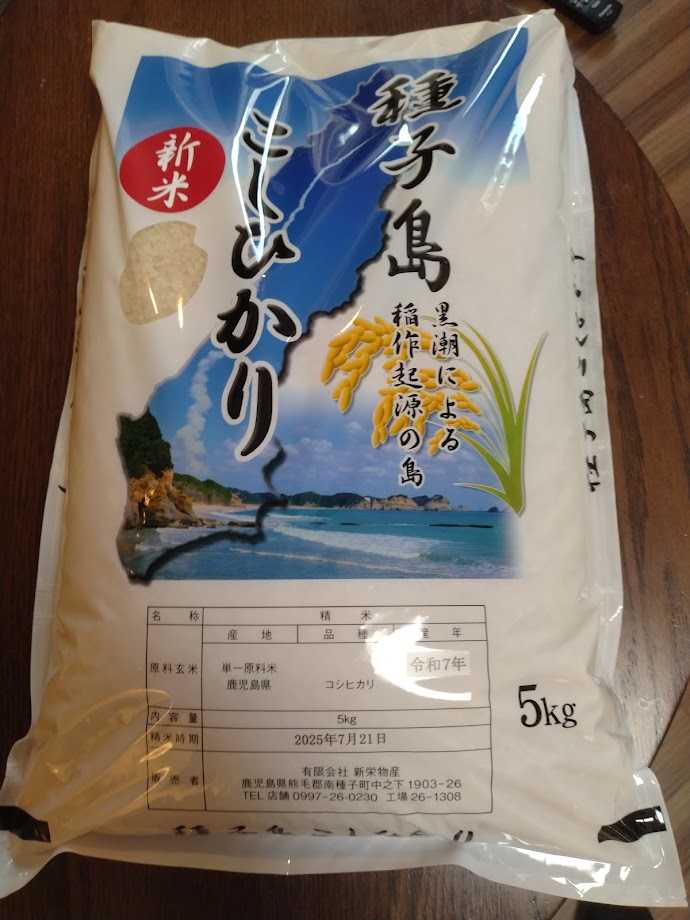 新しい袋を開けていないため、レビューではない記事です。政府備蓄米の放出等でようやく落ち着きだした米相場、今年はおそらく去年の様な「店頭にお米がない」というほどのパニックにはならないかと思います。これだけ店頭に商品が増えてくると、米不足の最大の理由が「投機的な売り惜しみ」だったという解釈が、最も正しかったと言えるでしょう。が、去年の8月のあのパニック以降お米の通販関連サイトは狂ったままです。その上で、特に今年2月ごろからは「欲しい時に欲しいものが手に入らない」という状況が続いているのは事実で、去年は結果的に早場米を紹介できましたが今年はあまり出来ないかもと思っていました。一昨年、このブログを始めて最初期の記事で、「鹿児島県種子島産の早場米コシヒカリ」を紹介しました。コメ供給が薄かった5月時点頃から、リピートしてもいいかと気にしていたのですが、昨日ホームページを見てみたら、令和7年度産米(つまり新米)が販売開始されていました。価格は、昨年が2600円だったものが4200円となっています。こればかりは仕方ない、ですかね。そして、この価格には送料は含まれていません。せっかくなので注文してみました。注文は、こちらの「新栄物産」さんのホームページより可能です。去年の米騒動のこともあるし、「端境期に先にちょっと押さえておきたい」という方などがいらっしゃいましたらどうぞ。
