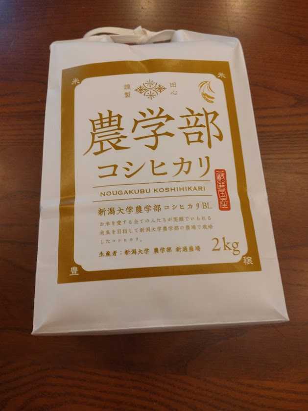 前回紹介した「新大コシヒカリ」とセットになっていた商品です。新潟大学農学部は、新潟市西区の五十嵐キャンパスの中に学部があり、同じ西区の中に「新通ステーション」という農場があり、2haの農場を持っています。こちらで栽培されたコシヒカリが、「農学部コシヒカリ」という名前でセットになっていました。「新潟大学農学部 コシヒカリBL」となっています。コシヒカリBLの特徴以前、新潟県産のブランドコシヒカリである「米山プリンセス」の記事で少し書きましたが、2005年以降、一般的な新潟県産のコシヒカリは従来からあるコシヒカリではなく、品種登録上は「コシヒカリBL」という別の品種になっています。BLとは、「Blast Resistance Lines」の略で、従来のコシヒカリにいもち病耐性を付加した品種になります。玄米では、「産地品種銘柄:新潟県産コシヒカリ」「品種名:コシヒカリBL」となっていますが、精米段階ではJAS法によって「コシヒカリ」とされるため、我々エンドユーザーはこの新潟県産コシヒカリが従来の「コシヒカリ」なのか、「コシヒカリBL」なのかを見分けることはできません。ただし、新潟県ではこの品種のみを奨励品種としているため、JAでは従来品種の買い付けは行っておらず、新潟県産のコシヒカリのうちJAを通して販売されるものはすべて「コシヒカリBL」なんだそうです。(ポケマルにある、従来品種コシヒカリをこだわりで生産している「高橋農場」さんの記事より。一度こちらの商品を試してみたいと思っていますが、未食です)以前紹介したJA魚沼みなみのコシヒカリは、その論理だとコシヒカリBLとどこにも書いてませんが、BL種ということになりそうです。開封してみました前回記事の再掲。新大コシヒカリと農学部コシヒカリのセットです。裏面です。精米日は7月1日になってますが、これ実は6月中旬に注文したんです。何らかの理由で注文キャンセルになったのでは、と本気で心配してました。(お陰で、環7の近くにあるウエルシアで「ゆめぴりか」2kgを買ってしまいました)コシヒカリBLについて、「コシヒカリ」と表記すると書きましたが、こちらの原料玄米欄を見て頂ければお分かりいただけるかと思います。ちなみに、前回紹介の「新大コシヒカリ」はコシヒカリと同じ品種とはされておらず、「コシヒカリ新潟大学NU1号」の表記でした。精米はこんな感じです新大コシヒカリと比較して、それほど白粒化しているようには見えません。去年の新潟県は、気候や水事情に大きな問題がなかったんでしょうね。それでは、いただきますごくごく普通の、美味しいコシヒカリでした。特徴は、と言われたら困ってしまうかもしれません。魚沼産の長期保存品よりは、水分がありましたが糖度はあちらのが上だったかもしれません。一つ前の「新大コシヒカリ」と同じ味かというと、むしろあちらのがより美味しかったようにも感じます。料理との付け合わせは、いわゆるコシヒカリのど真ん中にあたるものなので、肉系のそぼろとの組み合わせが良かったです。鮭、明太子、TKGといった朝食との組み合わせでも美味しく頂けました。ごちそうさまでした