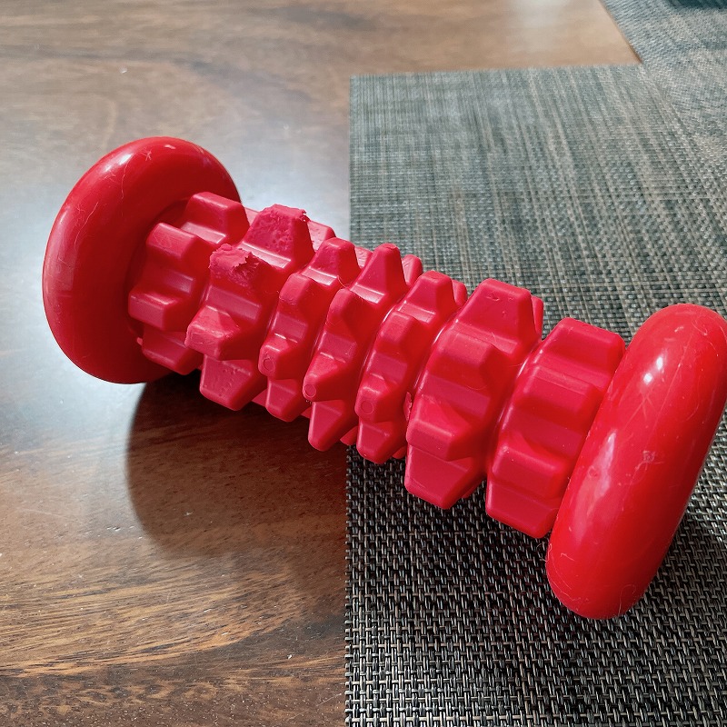 ジル、赤い方は、とーちゃんの足裏ごろごろマッサージ器だよ大笑い